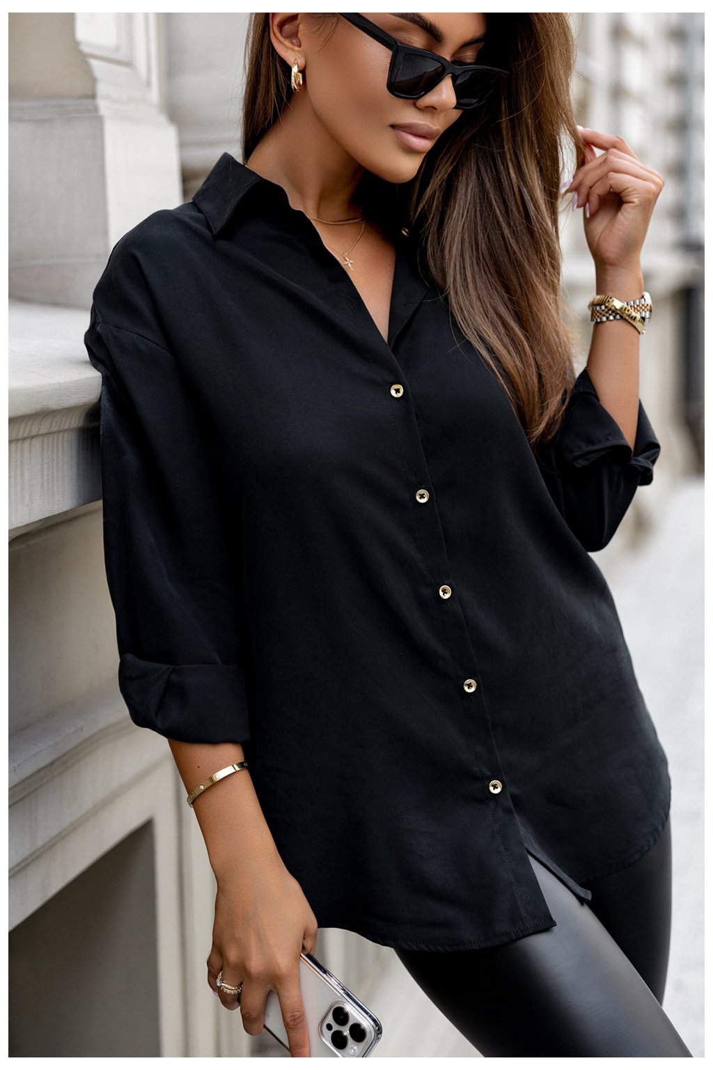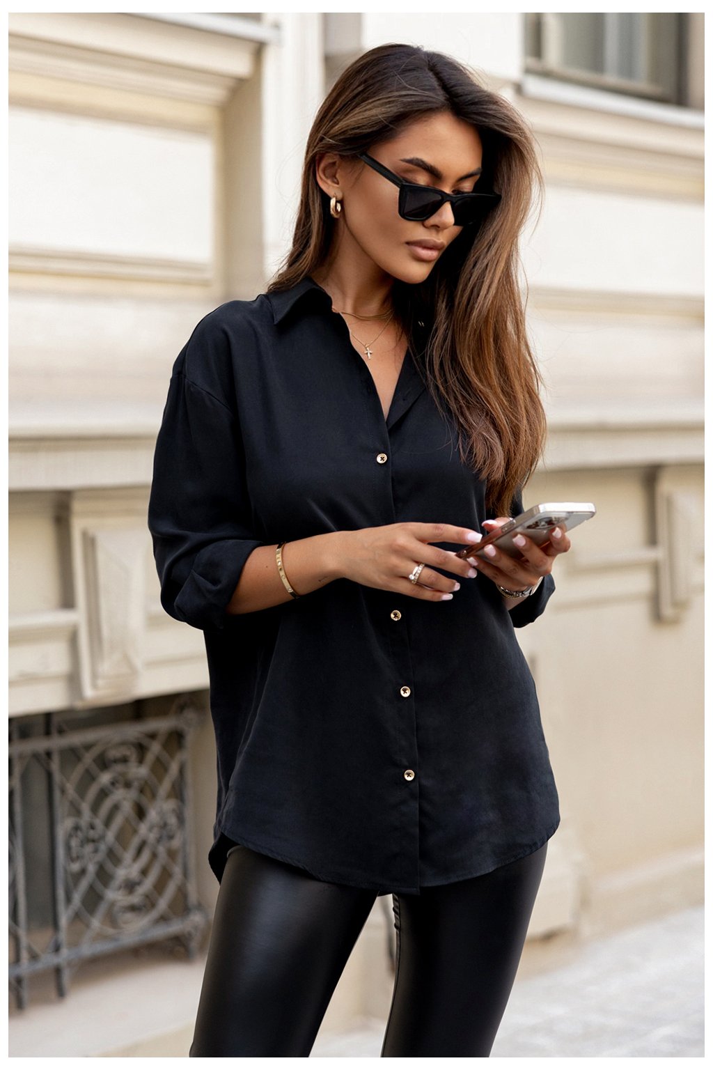 Košile Emilie je klasická dámská košile ušitá z hladké, jednotné a prodyšné tkaniny. Model geniální ve své jednoduchosti se bude hodit téměř pro každou příležitost. Zlaté knoflíky, široké manžety a decentní loga rozbíjejí minimalismus košile jako dokonale sladěné šperky a dodávají jí charakter. Navrženo a ušito v Polsku.