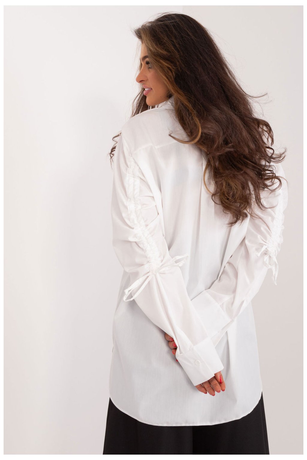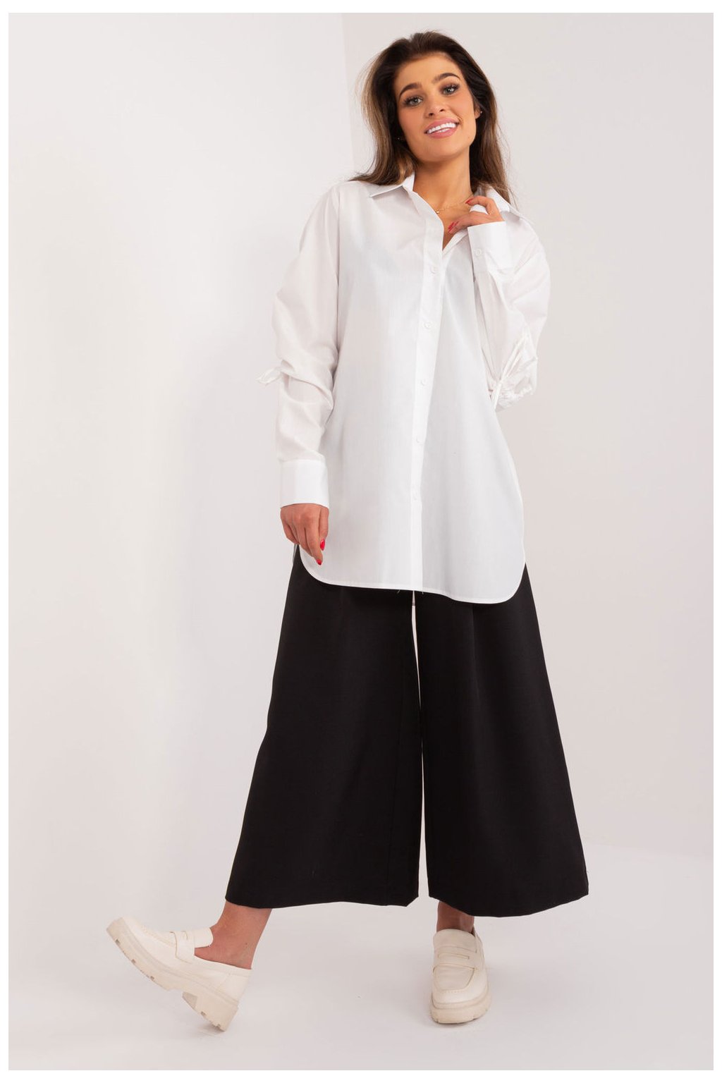 Ležérní košile s ozdobným žebrováním na rukávech je jedinečným kouskem oblečení, který kombinuje pohodlí s módním vzhledem. Tato košile je ideální pro každodenní situace i do práce a vyznačuje se pečlivě promyšleným střihem, který klade důraz na ležérní a stylové nošení. Ležérní styl dodává košili lehkost, takže je ideální volbou pro každodenní vycházky nebo schůzky. Ozdobné žebrování na rukávech dodává jedinečný nádech a vnáší do oblečení prvek originality. Převládající vzor má hladký povrch, díky čemuž je košile univerzální a snadno kombinovatelná s různými kousky oblečení. Je vyrobena převážně z bavlny, zaručuje pohodlí a prodyšnost a dokonale se přizpůsobí každodennímu životnímu tempu. Dlouhé rukávy s ozdobným žebrováním a límečkem podtrhují moderní design košile a zároveň zachovávají ležérní charakter ležérního stylu. Zapínání na knoflíky usnadňuje oblékání košile a zároveň umožňuje upravit výstřih podle vašich představ. Ležérní košile s ozdobnými žebrovanými manžetami je určena pro ženy, které ocení stylové a pohodlné řešení svého každodenního oblečení. Nejenže dodá výraz ležérnímu stylingu, ale také vám umožní vyjádřit vlastní styl a originalitu.