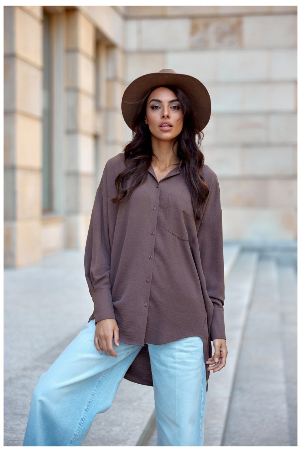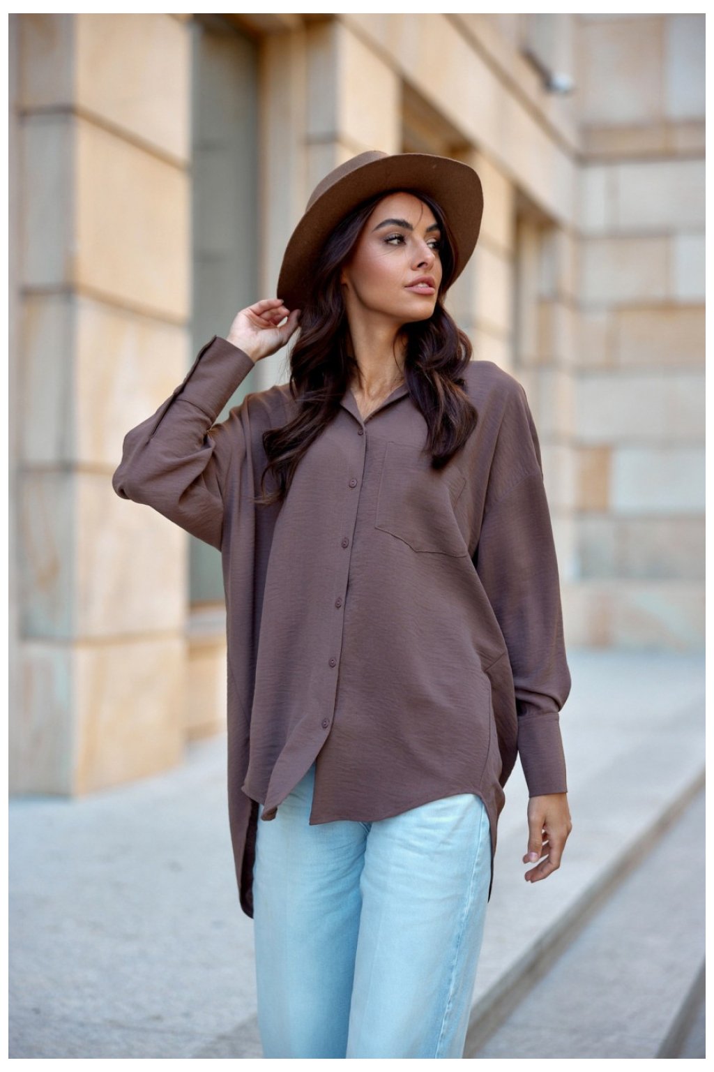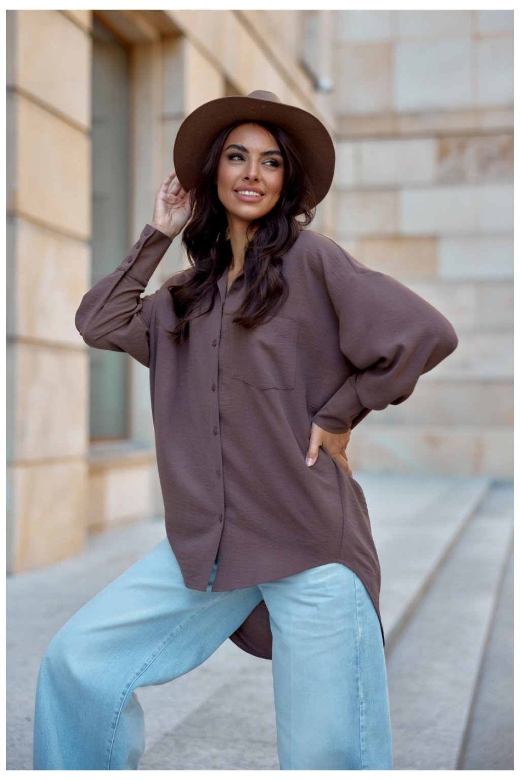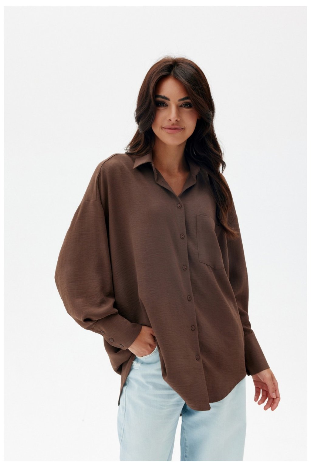 Objevte pohodlí a eleganci s naší asymetrickou dámskou košilí oversize střihu. Tato jedinečná košile se vyznačuje bufetovými dlouhými rukávy zakončenými manžetami, které jí dodávají neobvyklý nádech. Zapíná se vpředu na knoflíky, díky čemuž se snadno obléká a nosí. Delší zadní část košile vnáší do jejího střihu prvek ležérnosti a uvolněnosti, takže je ideální volbou pro každou příležitost. Roztomilá kapsička na přední straně dodává košili charakter, zatímco klasický límec vnáší do košile nádech klasiky. Vyzkoušejte, jak snadno lze skloubit pohodlí a módní vzhled. Perfektně se kombinuje s džínami nebo voskovanými kalhotami, což z něj činí univerzální volbu pro mnoho příležitostí ? od každodenních povinností až po setkání s přáteli. Lze ji nosit s klasickými jehlovými podpatky i sportovní obuví, což vám dává spoustu možností stylingu. Ať už je vaše velikost jakákoli, v této košili se budete jistě cítit přitažlivě a pohodlně. Je nezbytnou součástí každého šatníku! Výrobek je vyroben a ušit v Polsku.