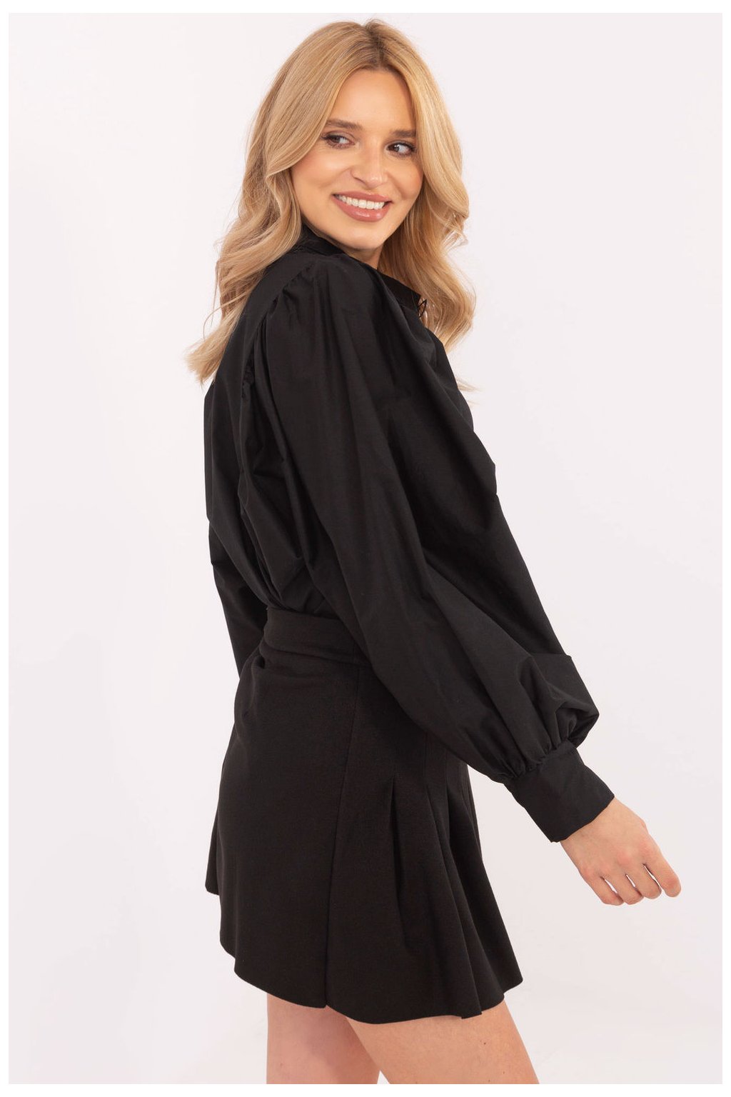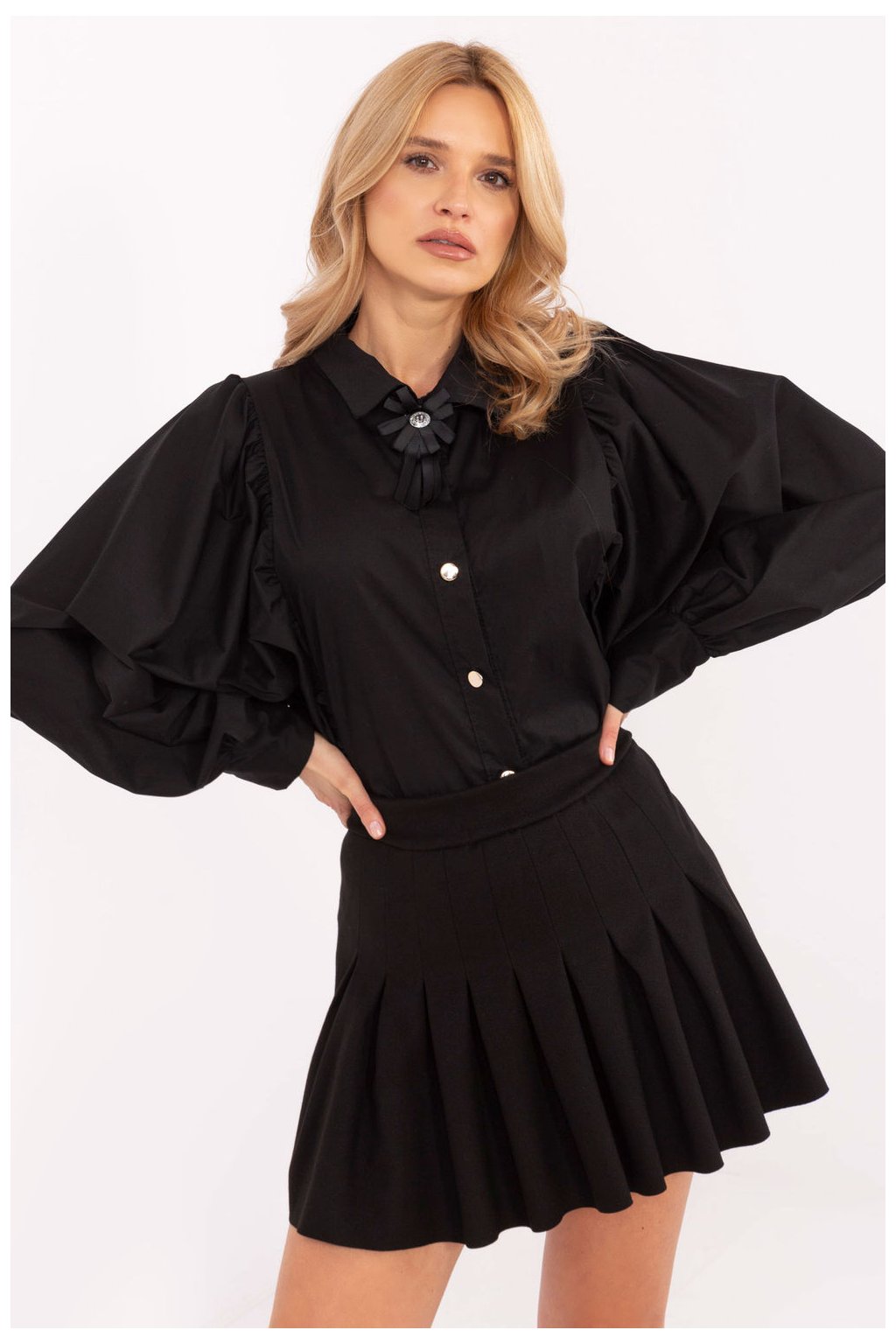 Klasická dámská košile je kvintesencí elegance a stylu, ideální na formální příležitosti i do práce. Vyrobená z kombinace polyesteru, viskózy a elastanu, poskytuje pohodlí nošení a elegantní vzhled. Hladký vzor zdůrazňuje minimalistický charakter, což jí dodává univerzálnost. Standardní délka, dlouhý rukáv a klasický límeček dělají z košile vhodný k mnoha formálním stylizacím. Dekorativní záhyby a nadýchané rukávy přidávají jemný šarm, zatímco odnímatelná brož dodává stylový akcent, který lze přizpůsobit různým příležitostem. Zapínání na knoflíky dokončuje klasický vzhled této výjimečné košile.