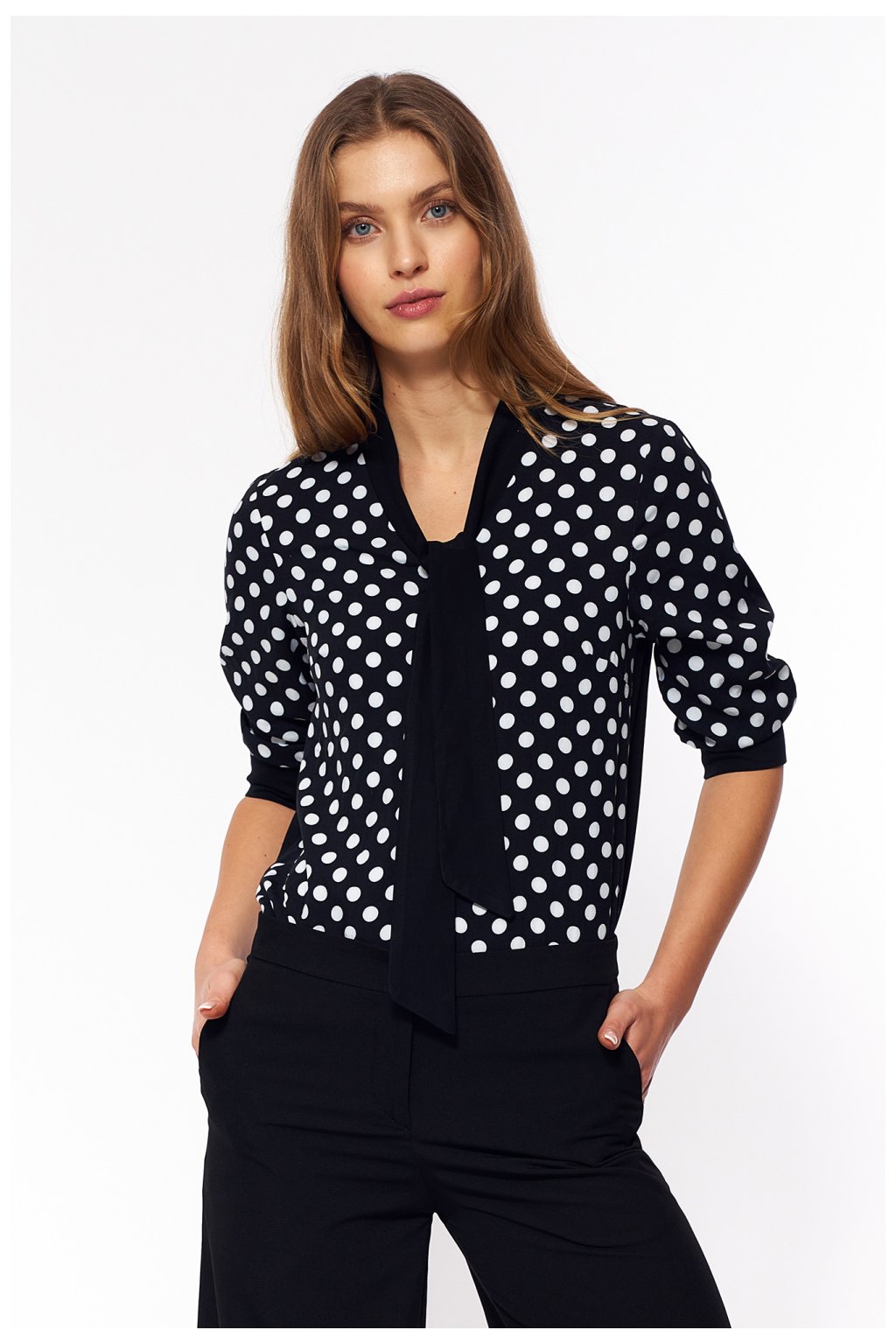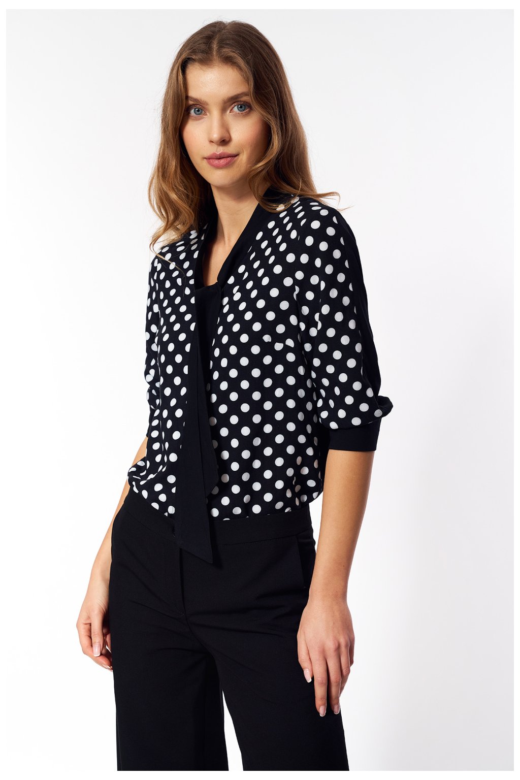 Velmi jemná košile v pestrobarevných puntíkách je ideálním doplňkem k outfitu typu soft office. Košile odráží módní návrat do šílených 60. let. Vzor v puntíkách elegantně přidává dívčí vzhled. Košile má potisk pouze na přední straně, zatímco zadní strana je hladká.