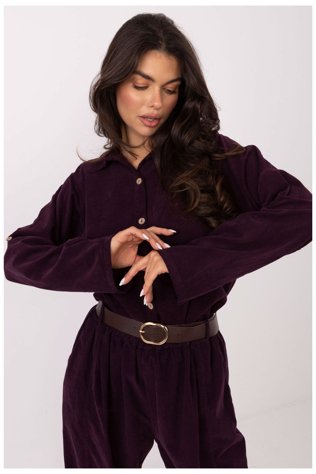 Elegantní dámská košile s casual charakterem, ideální na každý den. Vyrobena z příjemného na dotek žinylkového materiálu s dominujícím polyesterem, který se vyznačuje různorodou strukturou a jemným leskem. Model má klasický límeček a dlouhý rukáv, a zapínání na knoflíky mu dodává nadčasový a elegantní vzhled. Standardní délka z ní dělá skvělý doplněk jak k džínům, tak k kalhotám s vysokým pasem. Ideální volba pro pohodlné, módní a univerzální casual outfit.