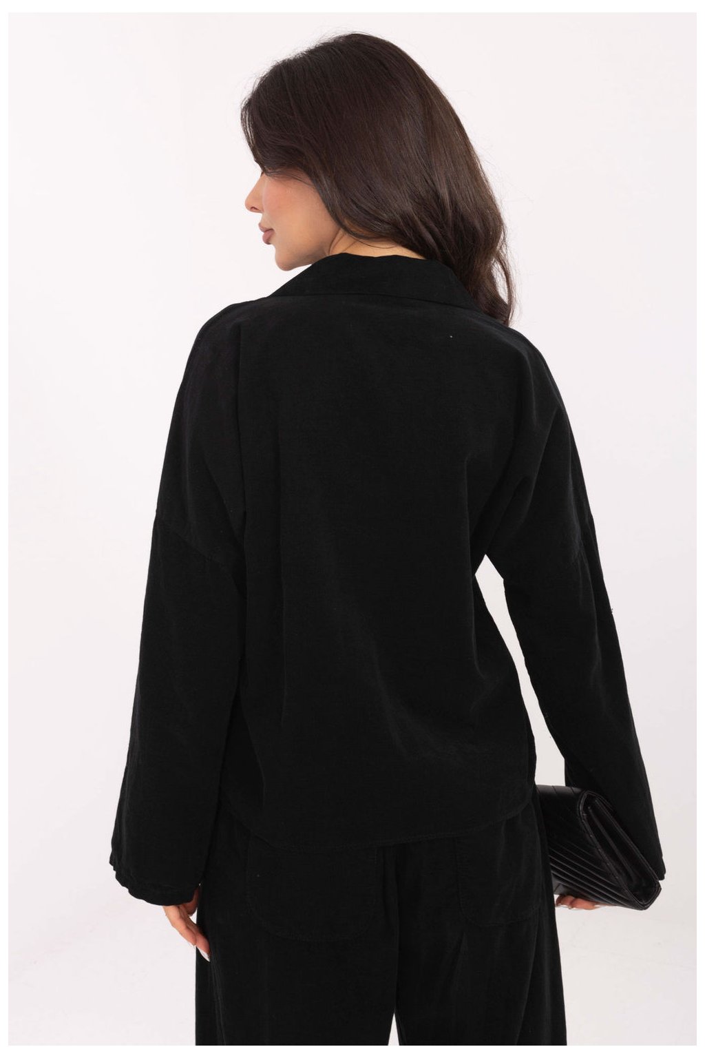 Elegantní dámská košile s ležérním charakterem, ideální na každý den. Vyrobená z příjemného na dotek žíněného materiálu s dominujícím polyesterem, který se vyznačuje různorodou fakturou a jemným leskem. Model má klasický límeček a dlouhý rukáv, a zapínání na knoflíky mu dodává nadčasový, elegantní vzhled. Standardní délka zajišťuje, že košile skvěle ladí jak s džíny, tak s kalhotami s vysokým pasem. Ideální volba pro ležérní styling, pohodlná, módní a univerzální.
