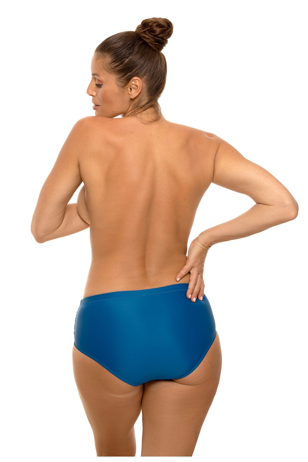Spodní díl plavek s vyšším střihem, vyrobený z elastické tkaniny. Ozdobné prošívání na bocích.
