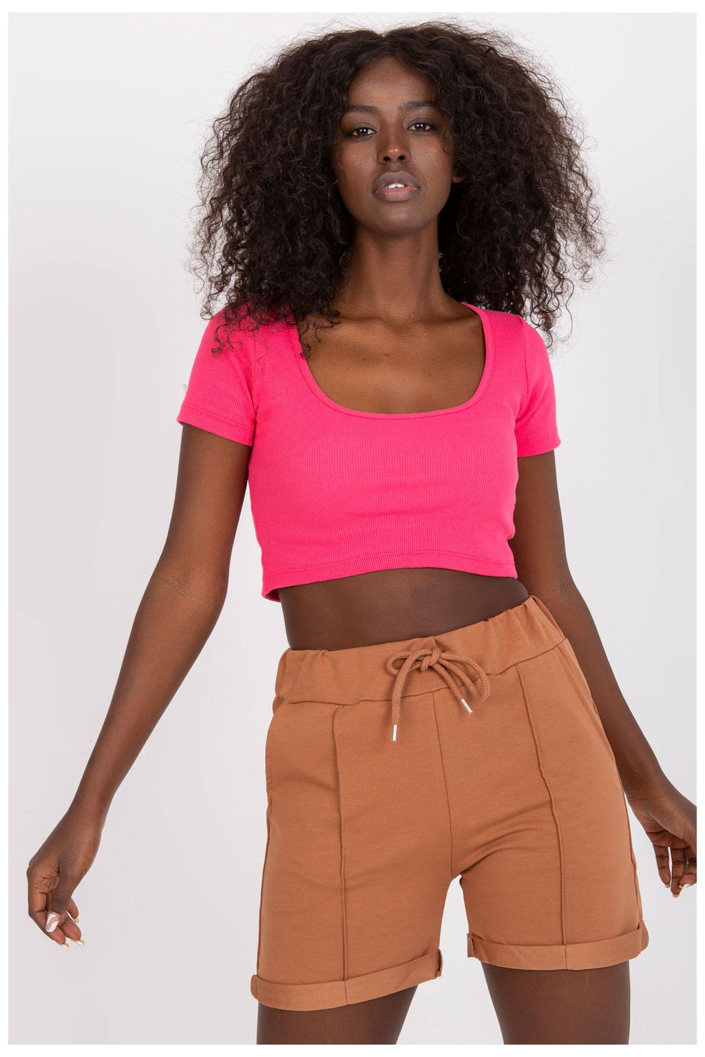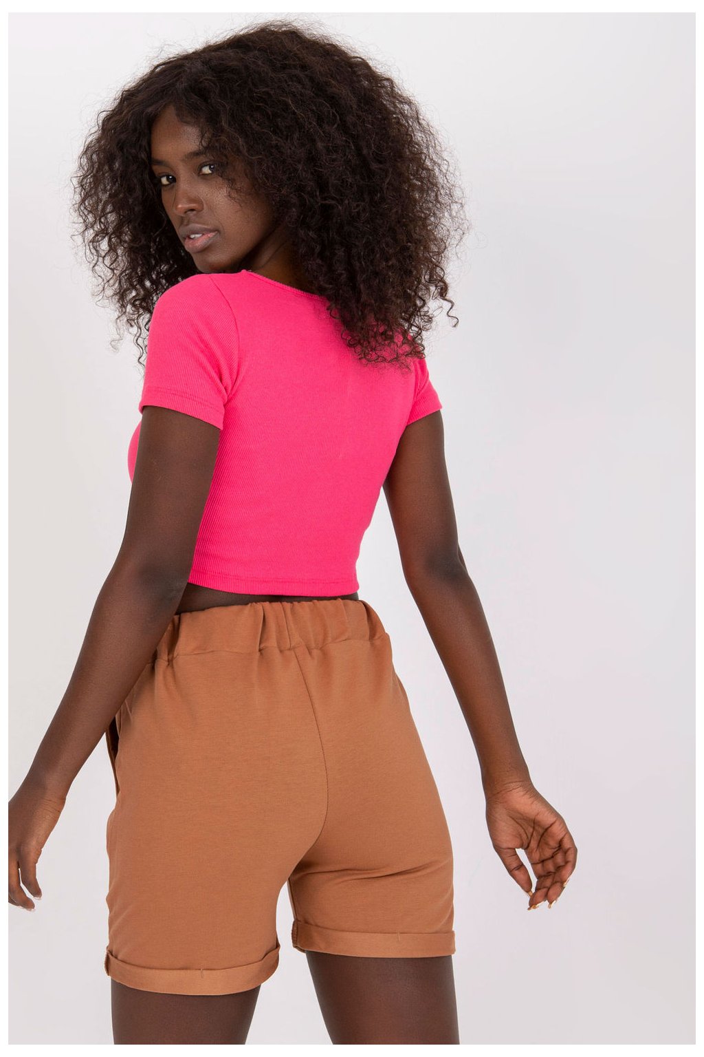 Bavlněné šortky s vysokým pasem, zavazování v pase, boční kapsy.
