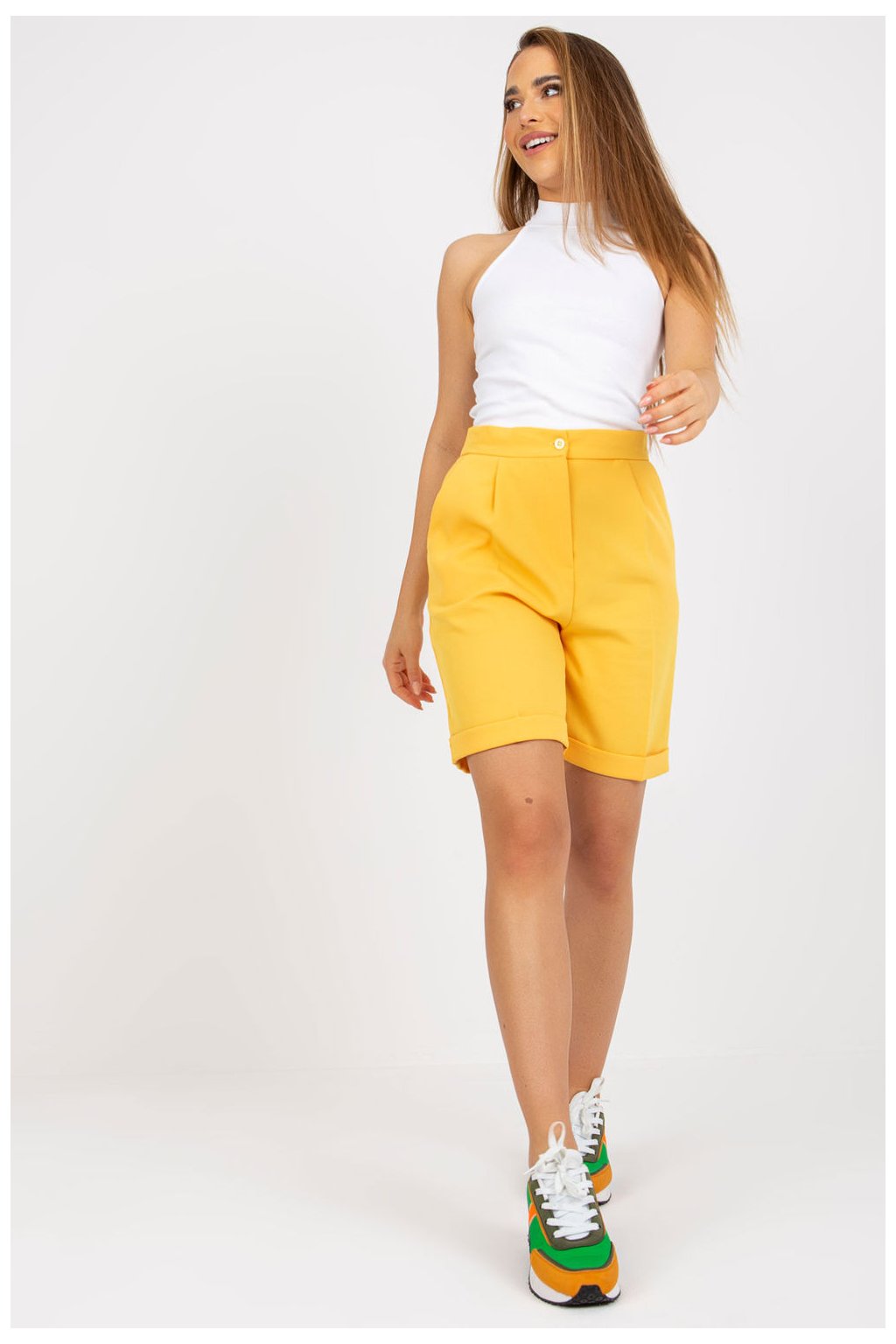 Šortky s vyšším pasem a zapínáním na zip a knoflík. Nohavice jsou dole ohrnuté a na bocích jsou kapsy. Skvěle se hodí k mnoha outfitům.