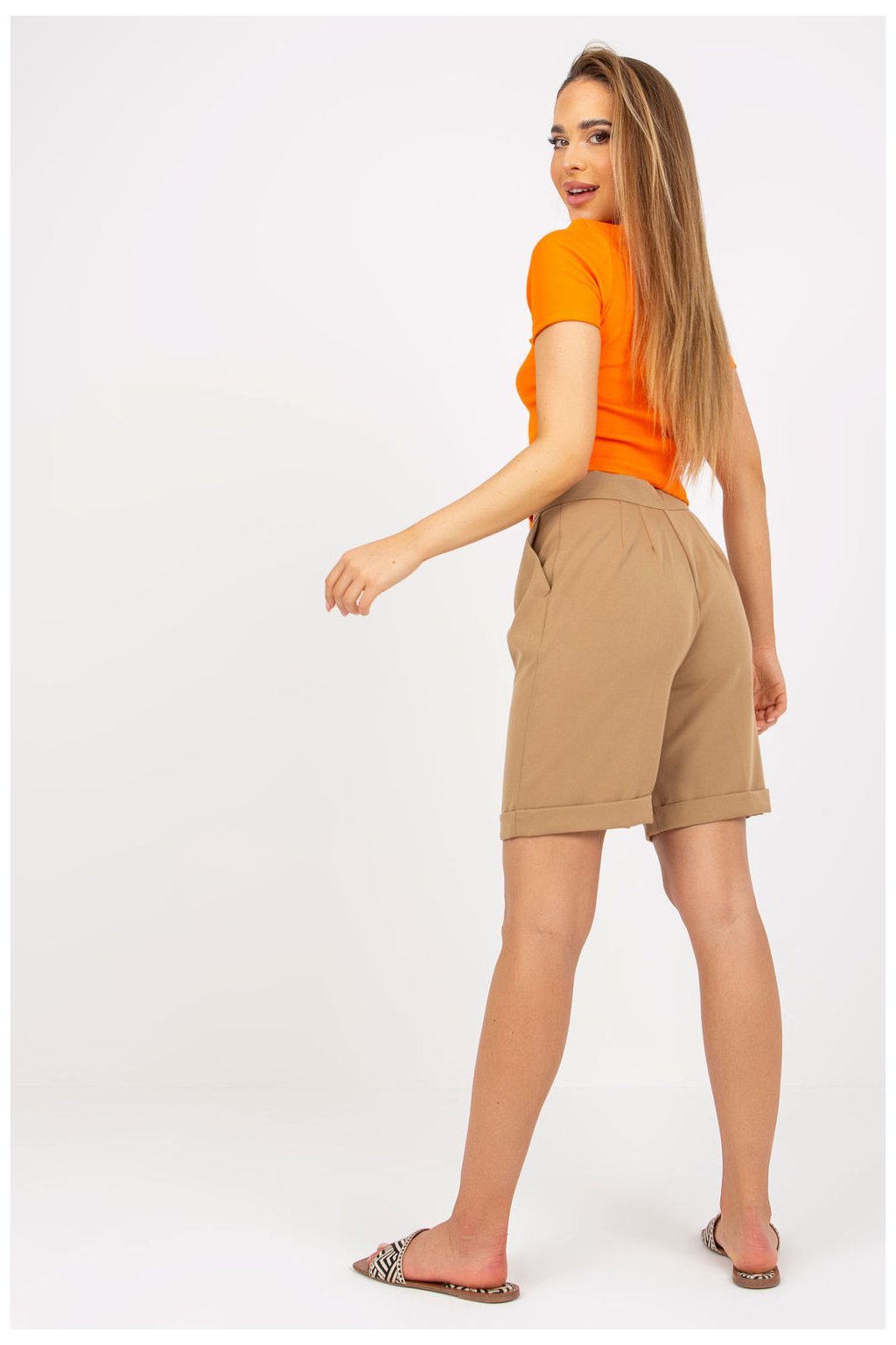 Šortky s vyšším pasem a zapínáním na zip a knoflík. Nohavice jsou dole ohrnuté a na bocích jsou kapsy. Skvěle se hodí k mnoha outfitům.
