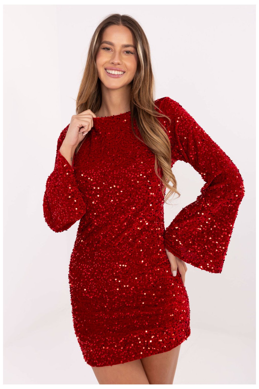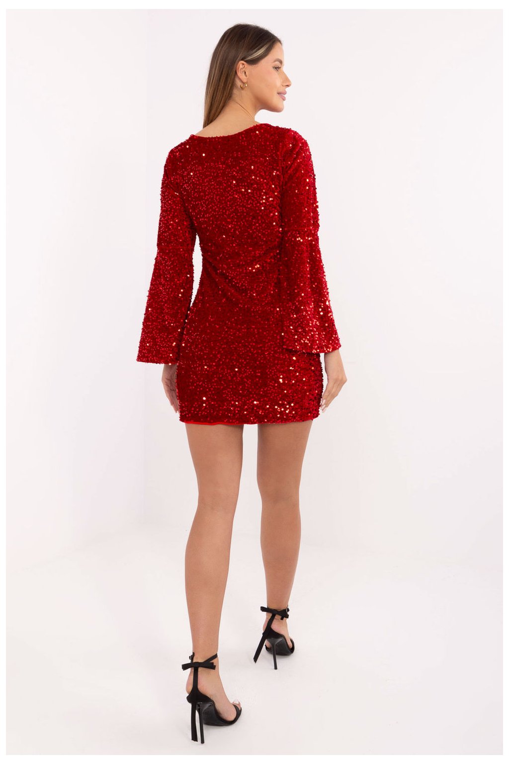 Úžasný koktejlový šaty ve strihu ceruzky, který okouzlí elegancí a leskem. Vyrobený z vysoké kvality směsi viskózy a polyesteru, skvěle padne do siluety, zdůrazňuje její tvary a zároveň poskytuje pohodlí při nošení. Celá plocha látky je pokrytá třpytivými flitry, které efektně odrážejí světlo, dodávají outfitu výjimečný charakter. Dlouhý zvonový rukáv dodává kreaci lehkost a moderní vzhled, kulatý výstřih zdůrazňuje klasický, ženský styl. Model s mini délkou decentně exponuje nohy, podšívka zaručuje pohodlí a ideální položení materiálu. Bez zapínání je šaty snadné obléknout a skvěle padnou do siluety. Je to ideální volba na večírky, přijetí a elegantní výstupy, kdy chcete zářit a cítit se výjimečně.