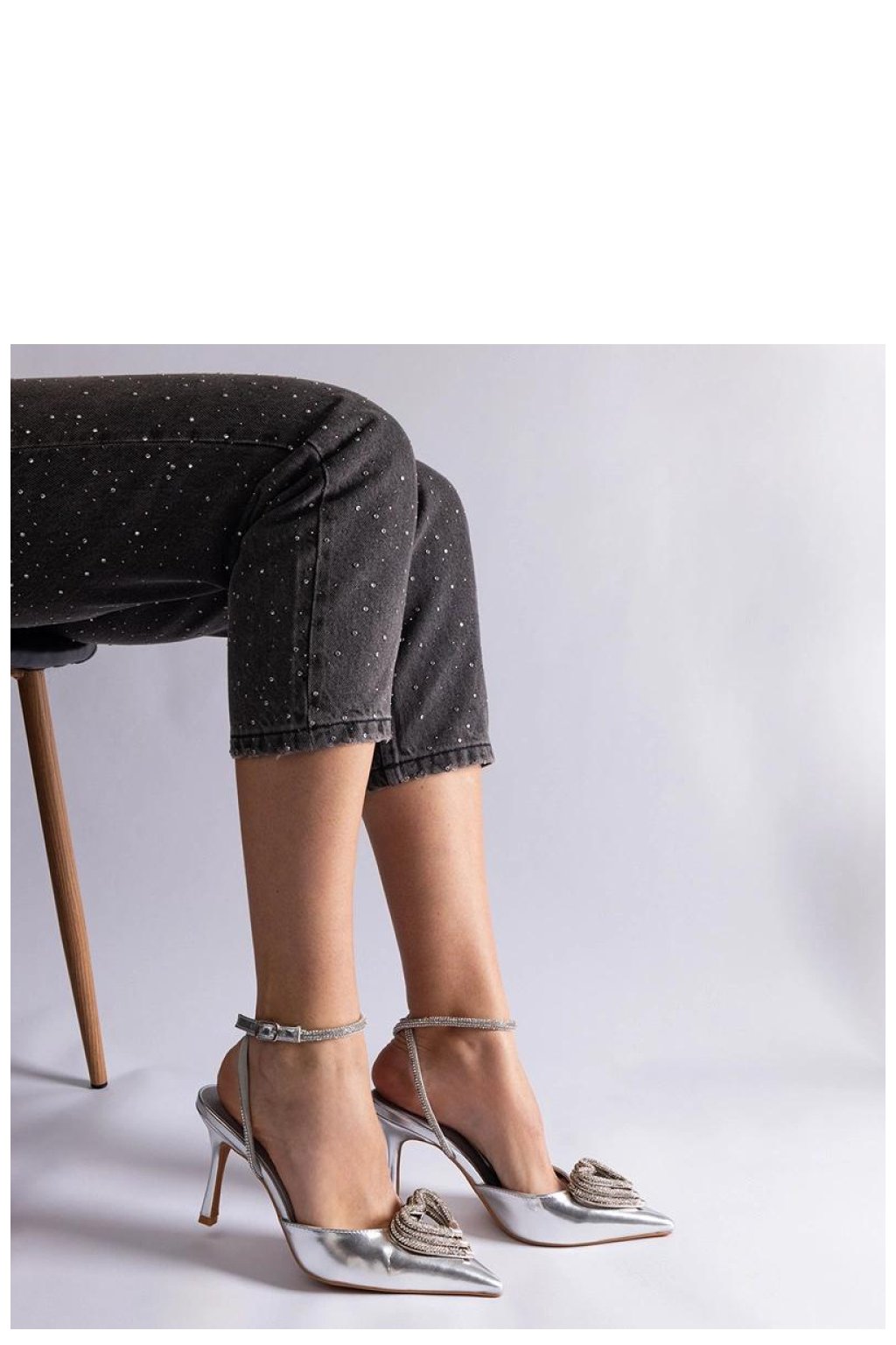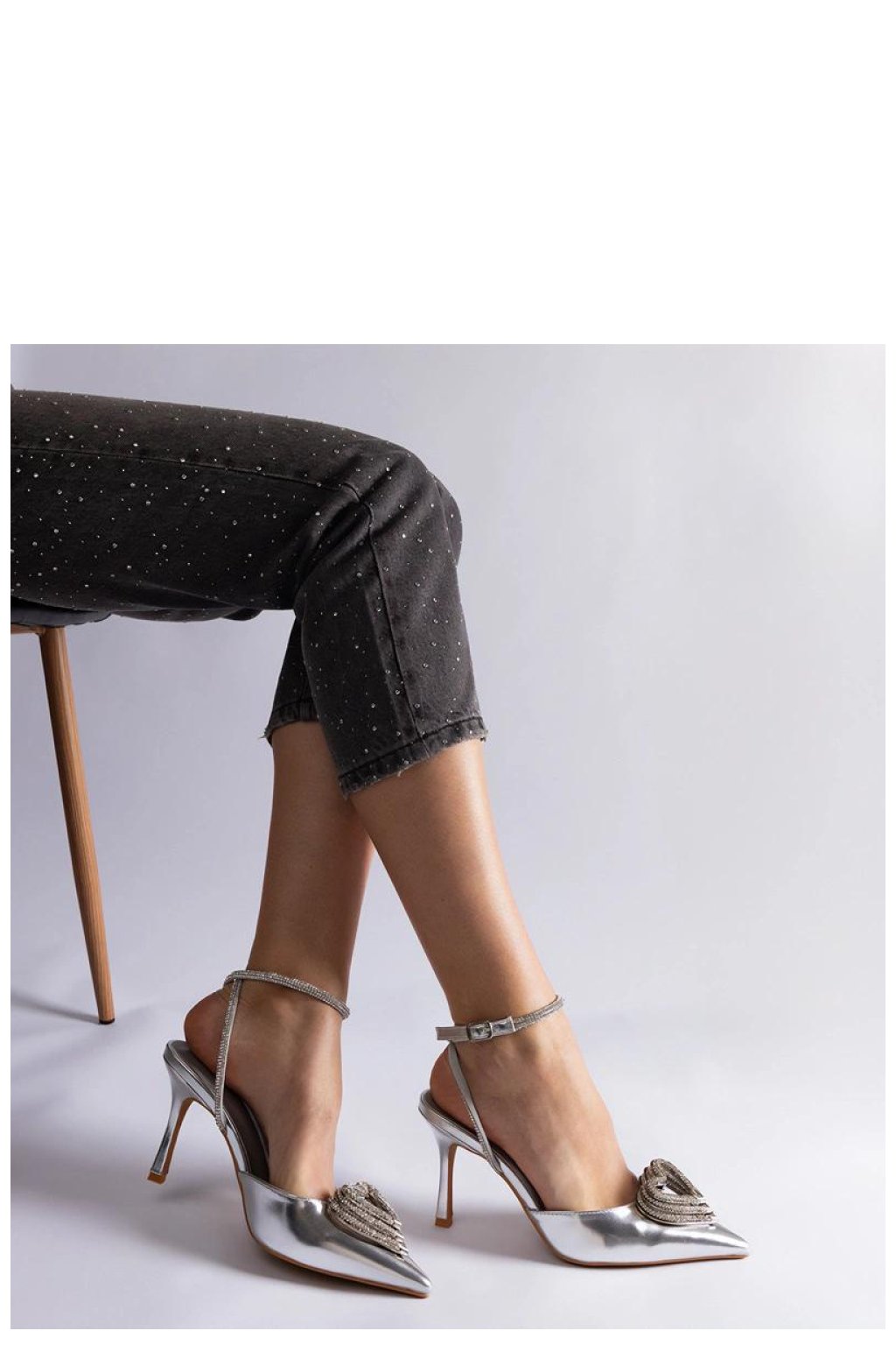 Stříbrné špendlíky s odkrytou patou zdobené zirkony Isoda Dolores jsou elegantní boty na speciální příležitosti. Vyrobena z vysoce kvalitní ekologické kůže, mají ozdobné zirkony po celé ploše. Otevřená pata jim dodává lehkost a eleganci. Ideální na večerní vycházky nebo slavnostní události. Zapínání na přezku zajišťuje ideální přizpůsobení k noze. Barva béžové podešve jim dodává jemný charakter. Tyto špendlíky určitě přidají sebevědomí a udělají z vás výjimečnou osobu na každé události. Ideální na letní kolekci.