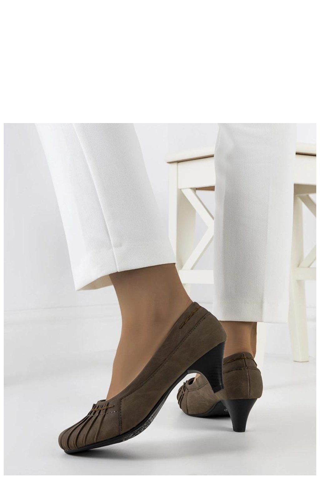 Elegantní hnědé lodičky Santro se záhybem jsou ideální volbou pro obchodní stylizaci. Vyrobené z vysoce kvalitní ekokože mají zaoblený špičatý nos, který zjemňuje nohu. S nízkým podpatkem poskytují pohodlí a stabilitu během nošení. Zajímavý detail ve formě záhybu na přední části svršku jim dodává originalitu. Standardní číslování, takže je dobré se při nákupu řídit svým velikostí. Skvělé lodičky na sloupku, které se osvědčí jak v kanceláři, tak při setkáních nebo slavnostech. Doplňkem je černá podrážka z umělé hmoty, která dodává eleganci každému outfitu. Ideální na nadcházející léto!
