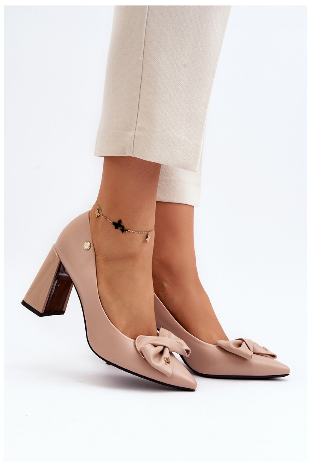 Elegantní lodičky na pevném jehlovém podpatku jsou ideální volbou pro mnoho příležitostí. Jsou vyrobeny s důrazem na detail a mají měkkou a pohodlnou stélku z přírodní kůže, která zajistí pohodlí i při dlouhodobém nošení. Jejich špičaté nosy dodávají styl, zatímco decentní emblém na bocích svršku dodává sofistikovaný nádech. Přední část zdobí mašlička. Tento model skvěle doplní každodenní i elegantní styling!