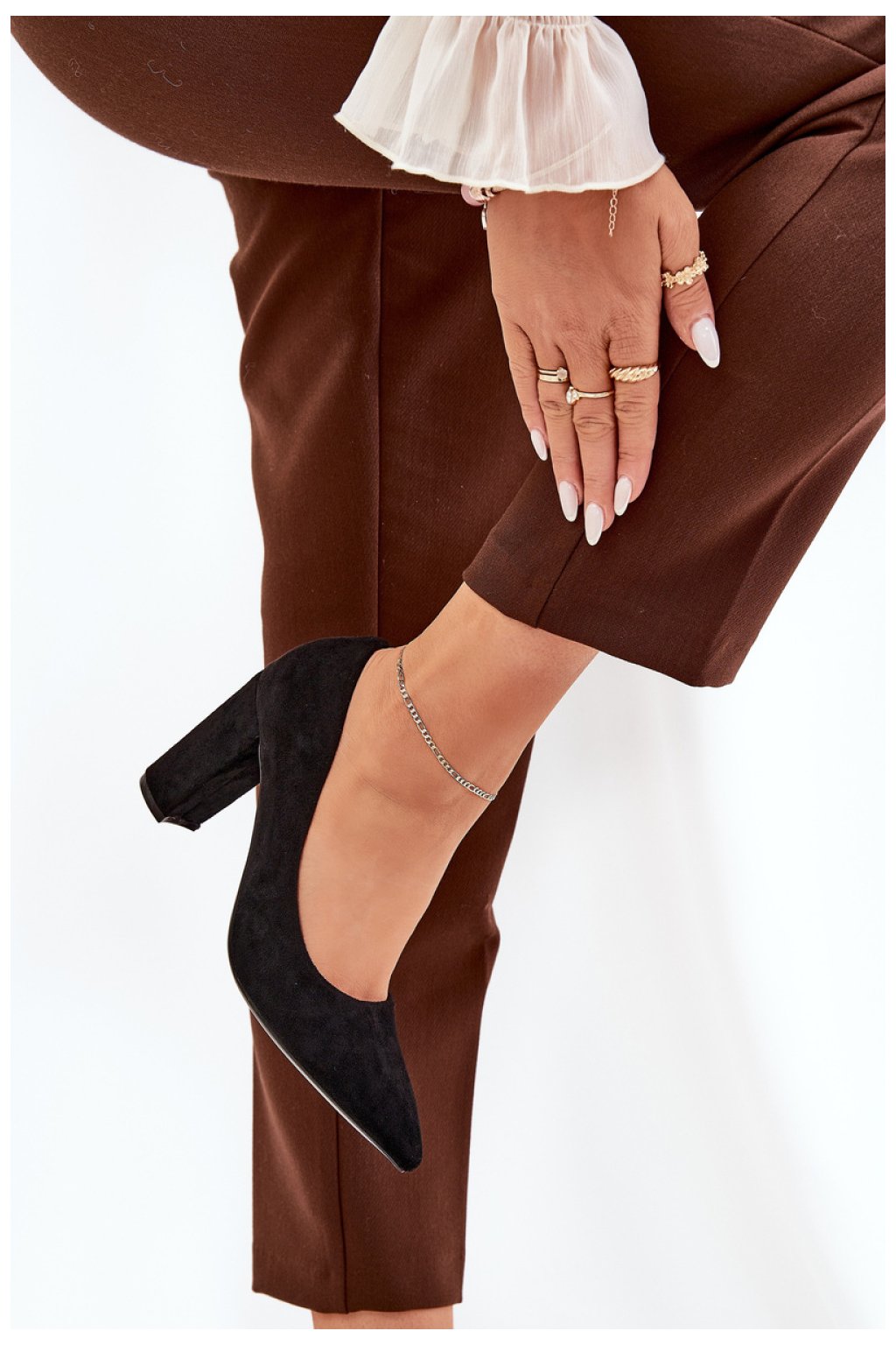 Loděnice vyrobené z ekologického semiše, umístěné na stabilním podpatku typu sloupek. Špičaté špičky opticky zúží nohy, dodávají postavě lehkost. Klasický střih z nich činí ideální volbu na různé příležitosti, od formálních setkání po večerní vycházky.