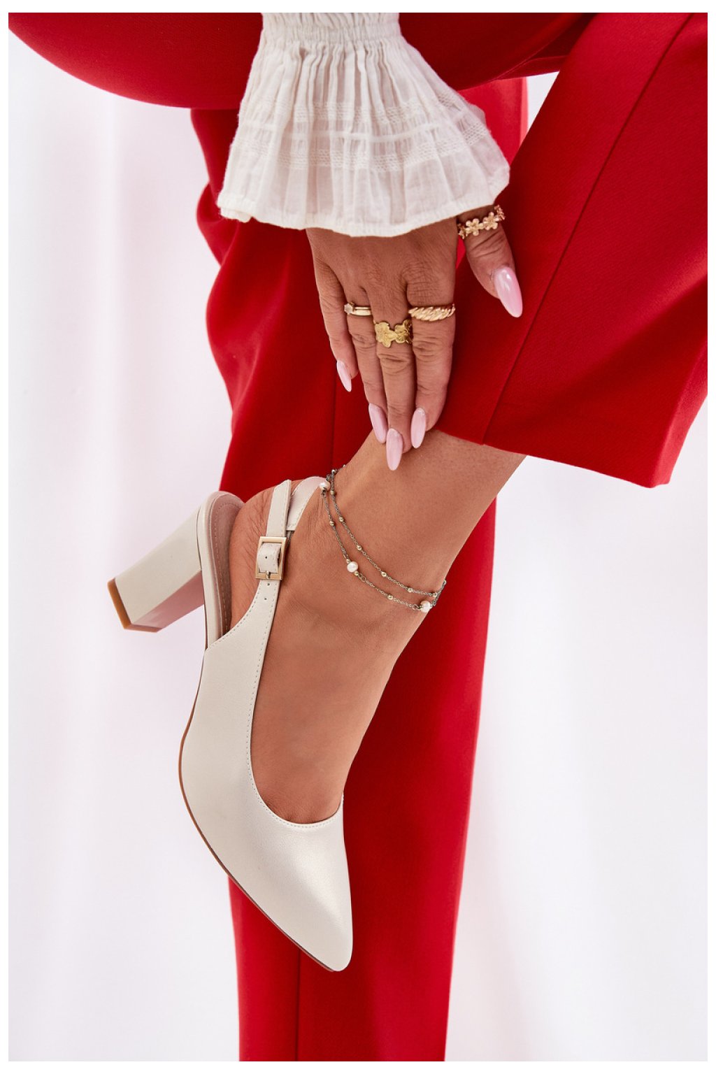 Pohodlné lodičky s pevným podpätkom vo forme stĺpika. Majú zips okolo členka na nastaviteľný popruh so sponou. Model s nošou v špičke a otvorenou pätou. Tieto topánky sú vyrobené z ekokože, zatiaľ čo podšívka je z prírodnej kože. Tento model by sa mal nájsť vo vašej skrini!