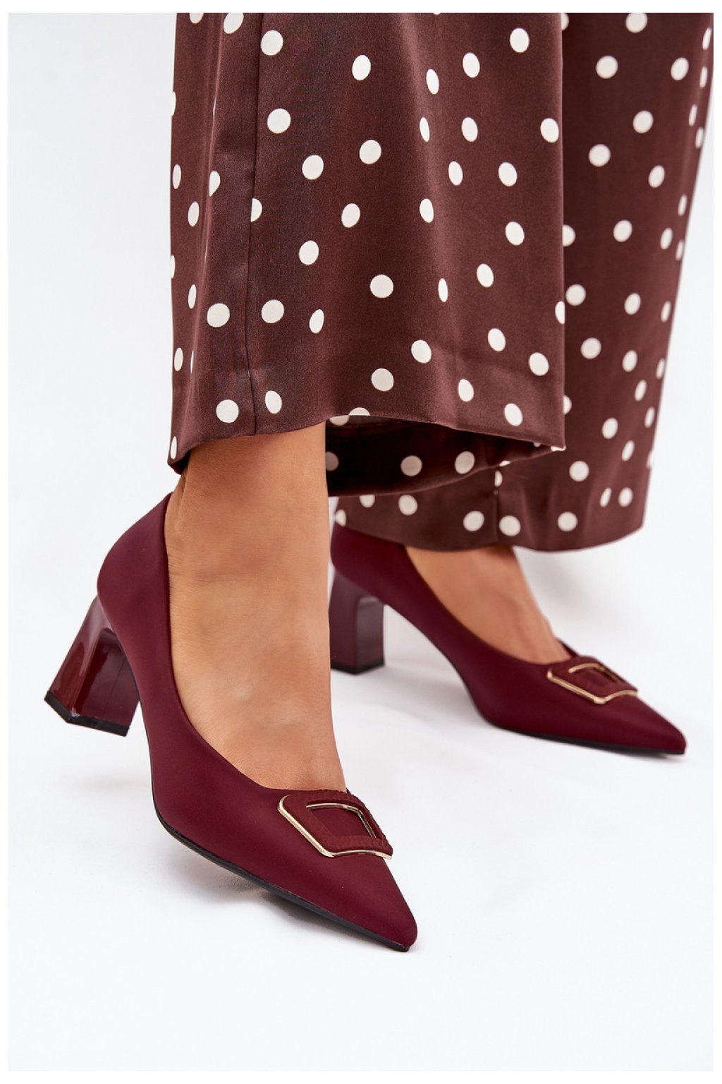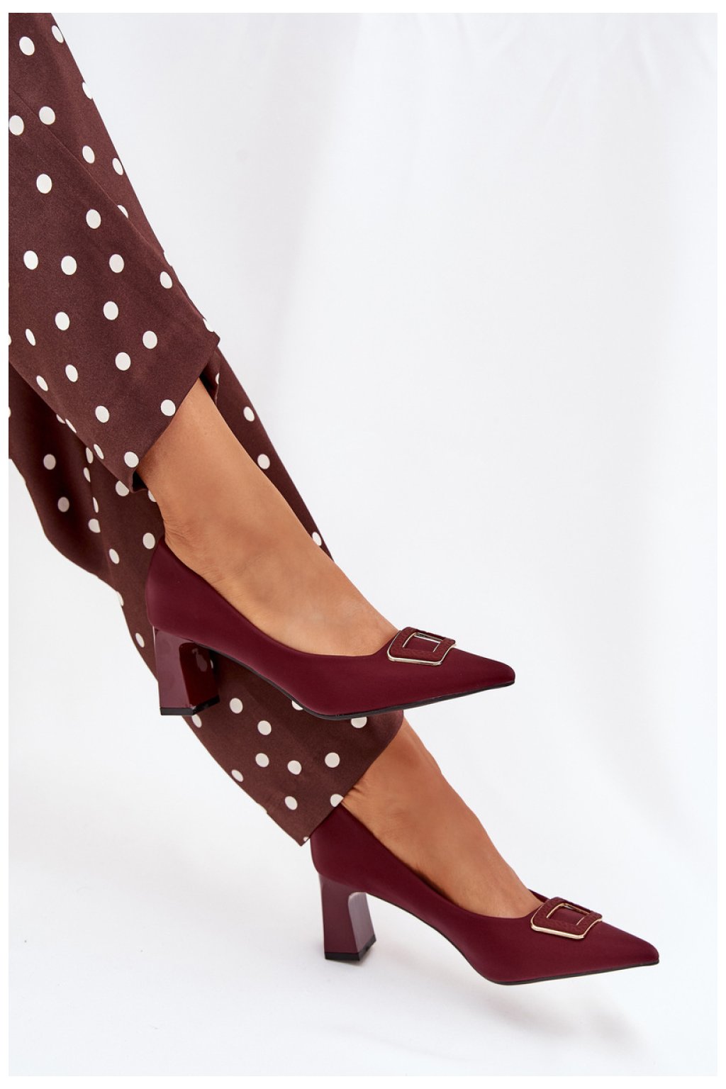 Elegantní dámské lodičky z eko kůže na sloupkovém podpatku jsou skvělým návrhem na různé příležitosti. Dekorativní spona vpředu jim dodává zvláštní charakter a špičatý tvar opticky prodlužuje nohy. Skvěle se hodí ke šatům, sukním nebo kalhotám, tyto lodičky spojují styl, pohodlí a moderní vzhled, vytvářejí nadčasovou klasiku ve vašem šatníku.