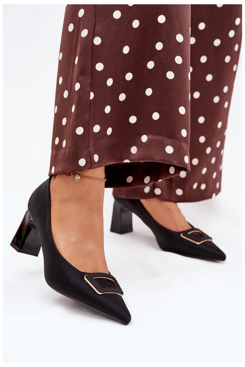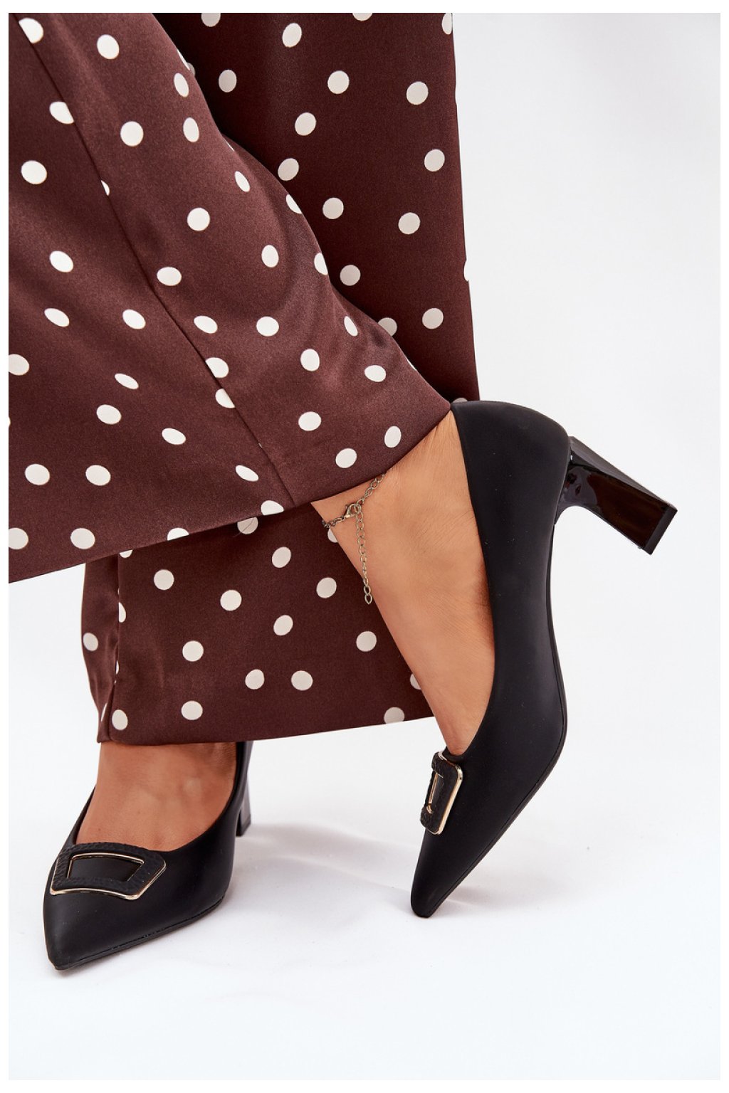 Dámské lodičky z ekokože na sloupkovém podpatku jsou elegantním návrhem pro různé příležitosti. Dekorativní přezka na špičce jim dodává zvláštní charakter a špičatý tvar opticky prodlužuje nohy. Skvěle se hodí k šatům, sukním nebo kalhotám, tyto lodičky spojují styl, pohodlí a moderní vzhled, vytvářejí nadčasovou klasiku ve vašem šatníku.