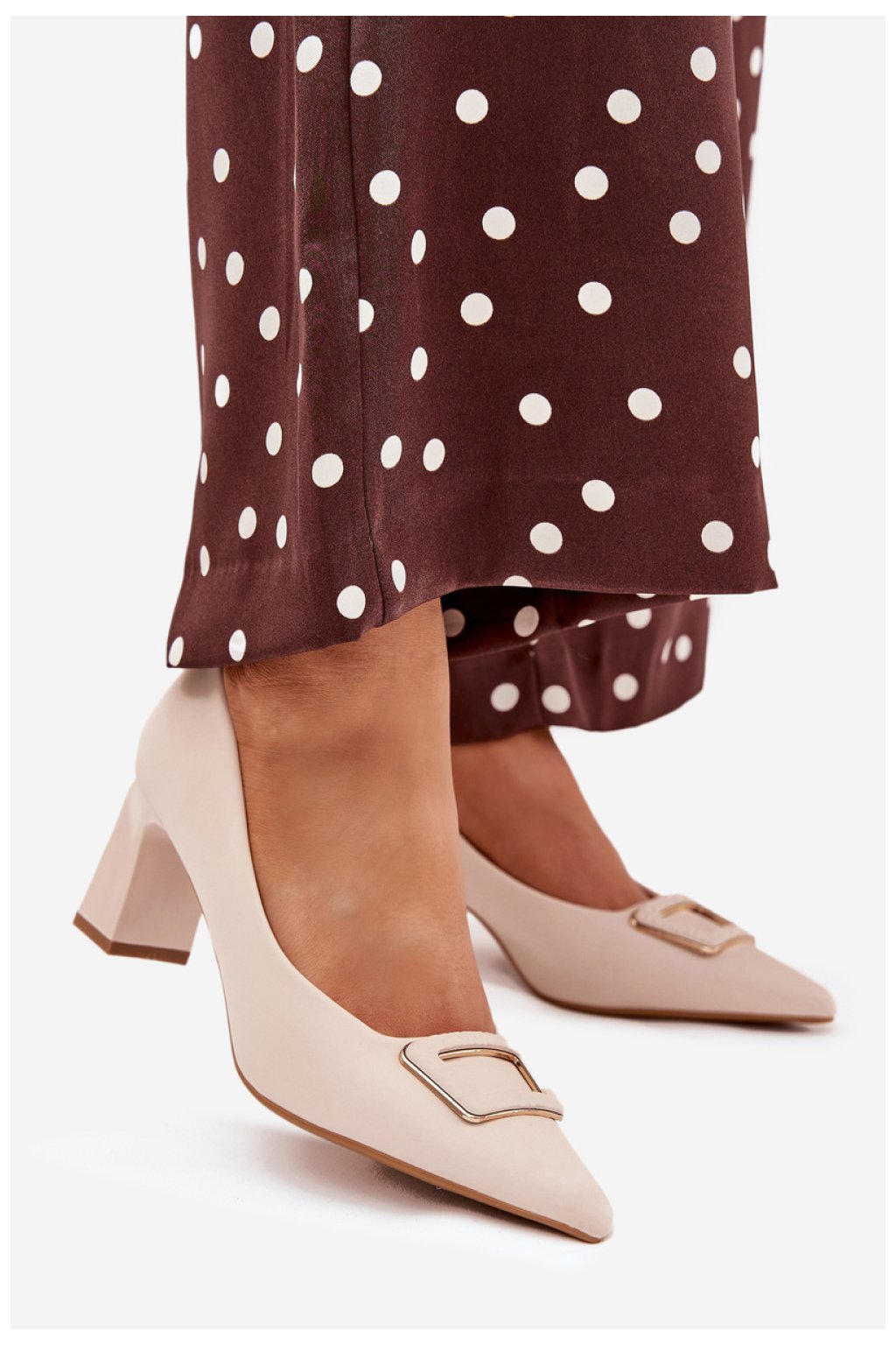 Lodičky pro ženy z ekokože, osazené na sloupkovém podpatku, jsou elegantní volbou na různé příležitosti. Dekorativní přezka vpředu jim dodává jedinečný charakter a špičaté špičky opticky zjemňují nohy. Ideální k šatům, sukním nebo kalhotám, tyto lodičky spojují styl, pohodlí a moderní vzhled, vytvářejí nadčasovou klasiku ve vašem šatníku.