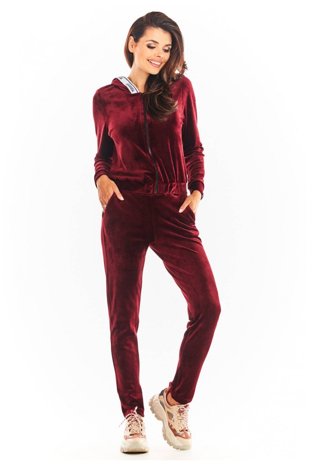 Rozepnutá mikina s kapucí. Je vyrobena z veluru, což je nemačkavý, hřejivý materiál, ideální pro každodenní nošení. Spodní část a rukávy jsou zakončeny lemem. Kolem kapoty je ozdobná páska s logem naší značky. K dispozici ve 4 barvách: béžové, černé, vínové a růžové. Výrobek je navržen a vyroben v Polsku..