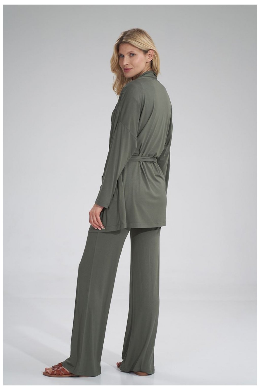 Volně střižené sako bez knoflíků s páskem, vpředu velké našité kapsy.