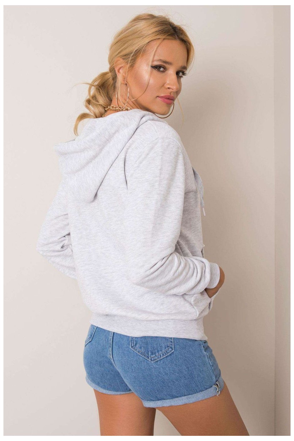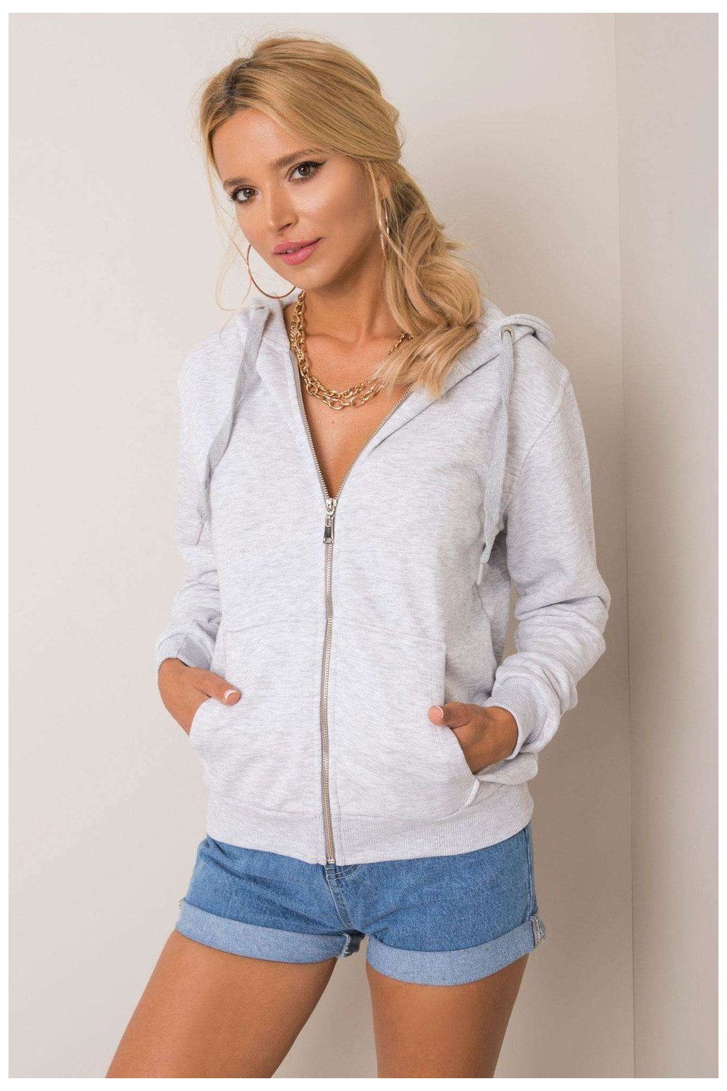 Dámská mikina na zip s kapucí a kapsami. Skvěle se hodí jako doplněk k mnoha neformálním outfitům.