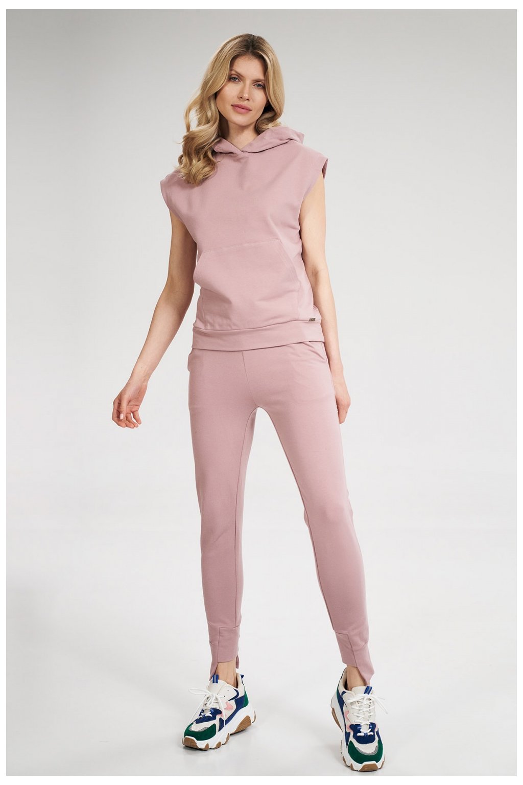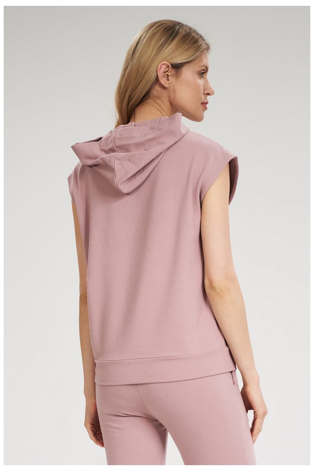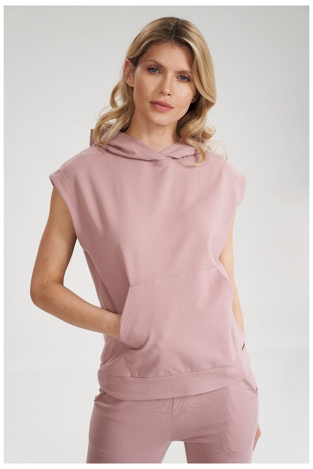 Bavlněná mikina bez rukávů s kapucí a velkou našitou kapsou na přední straně. Mikina volného střihu.