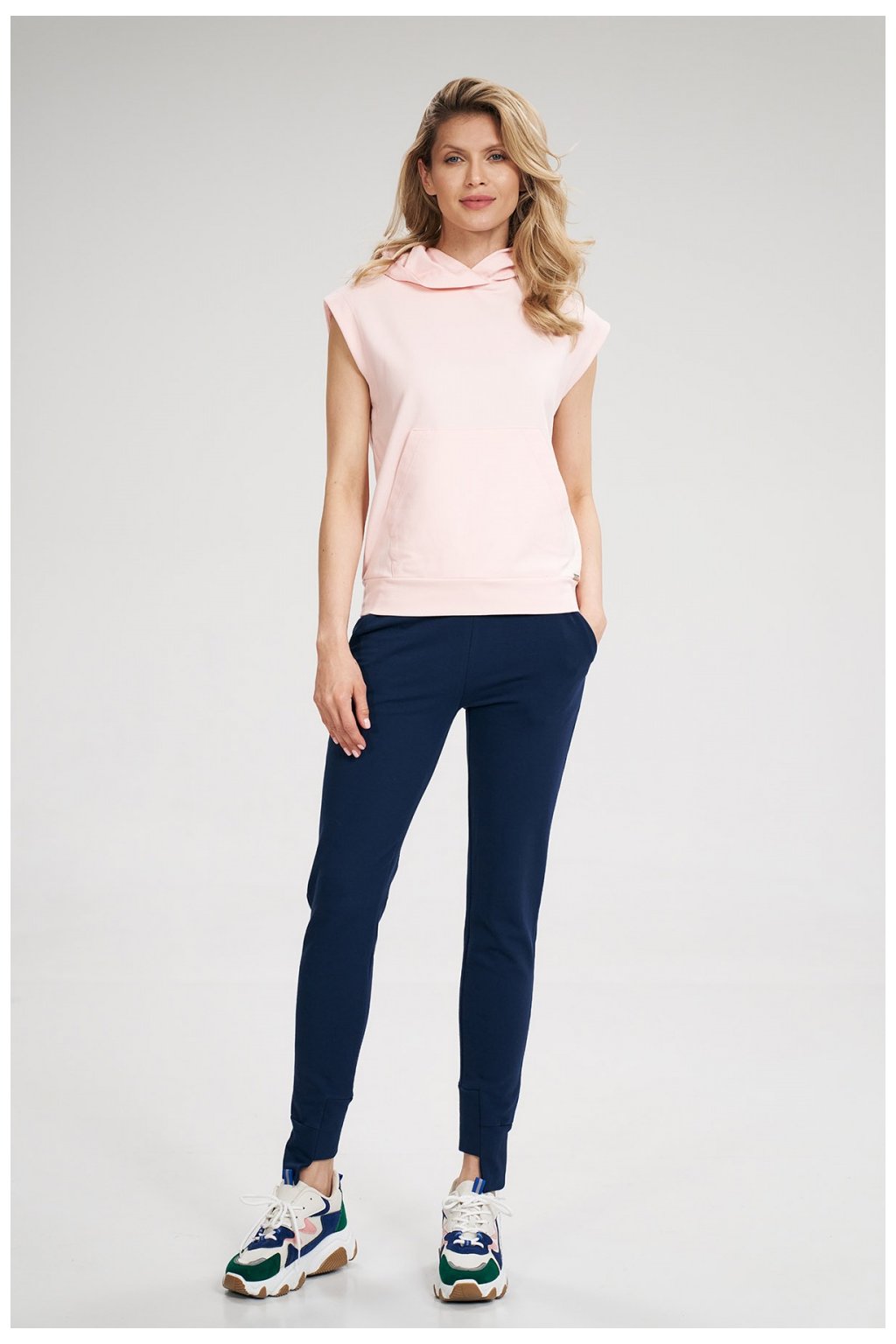 Bavlněná mikina bez rukávů s kapucí a velkou našitou kapsou na přední straně. Mikina volného střihu.