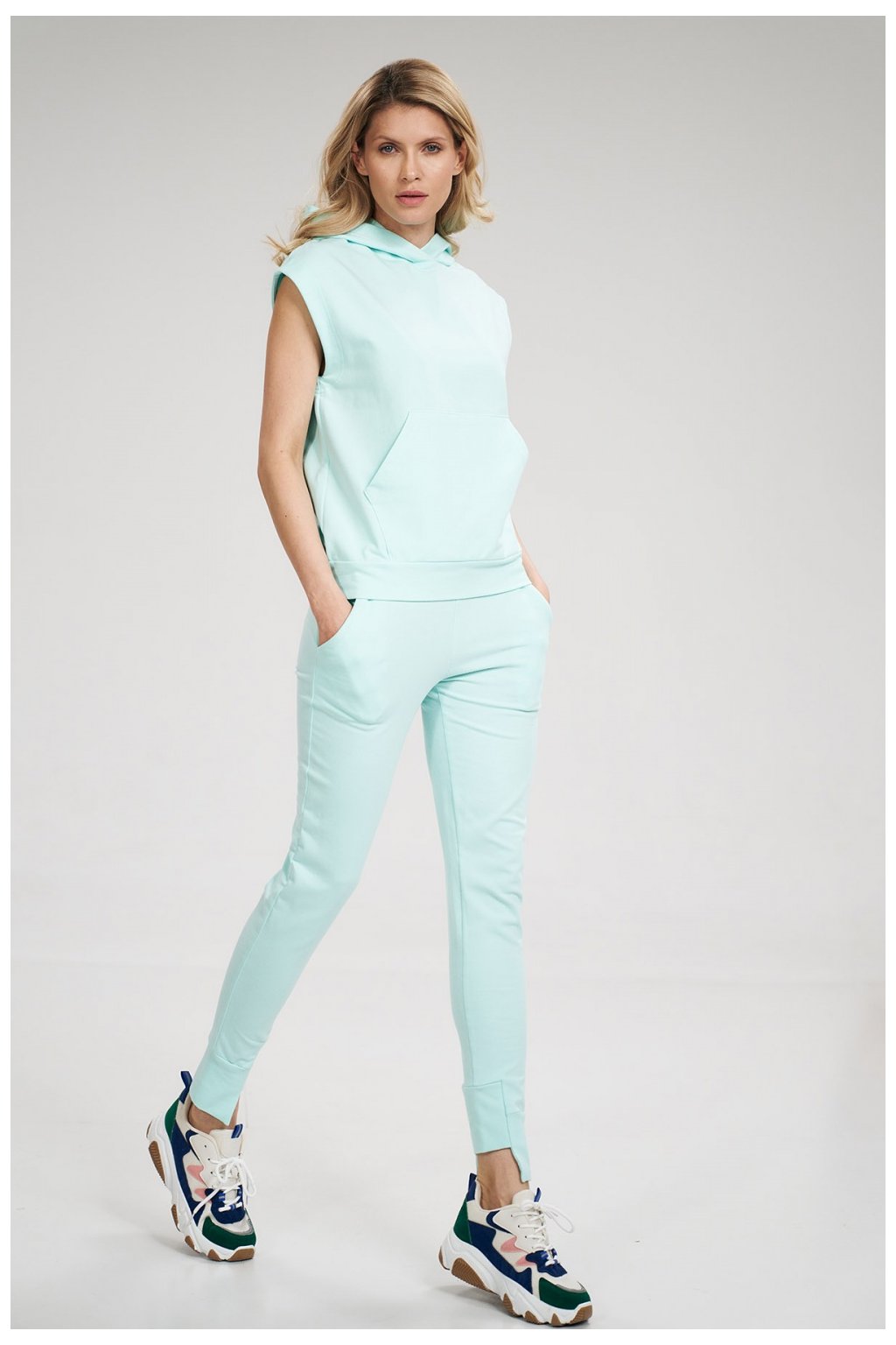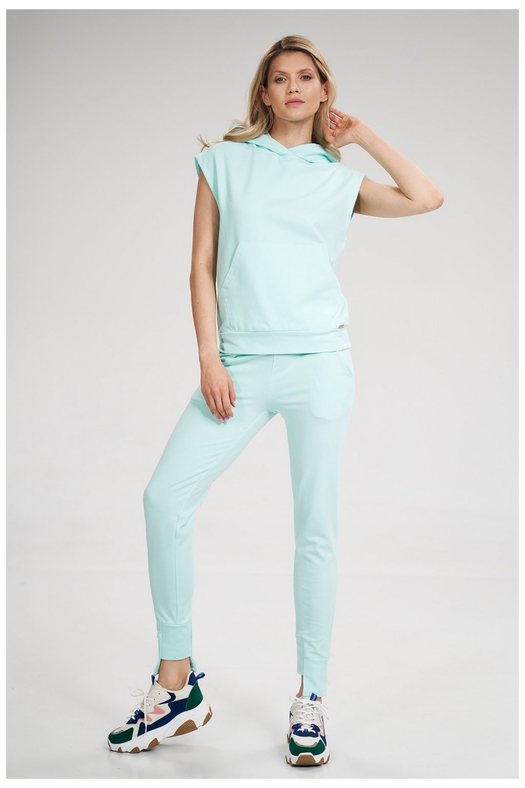 Bavlněná mikina bez rukávů s kapucí a velkou našitou kapsou na přední straně. Mikina volného střihu.