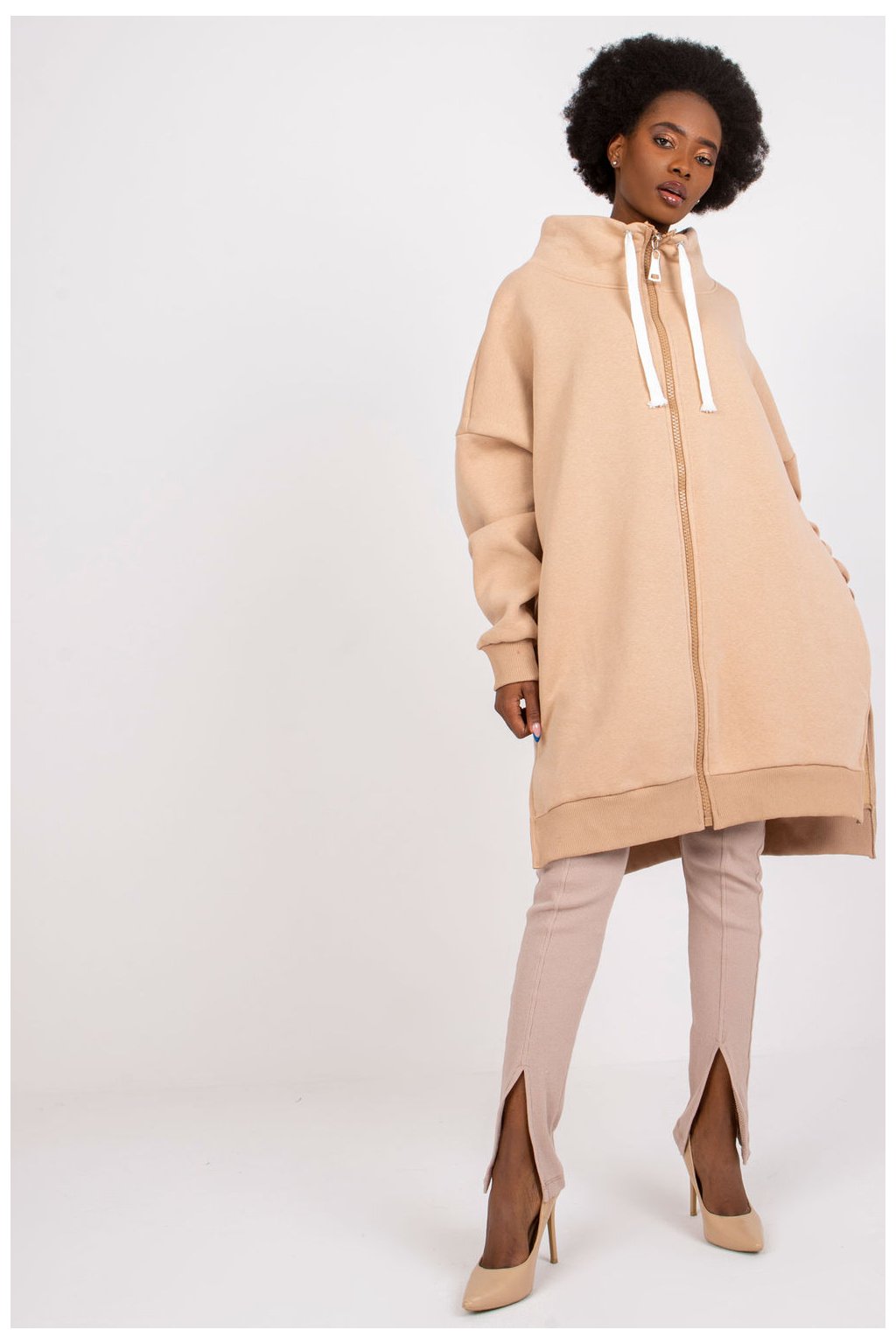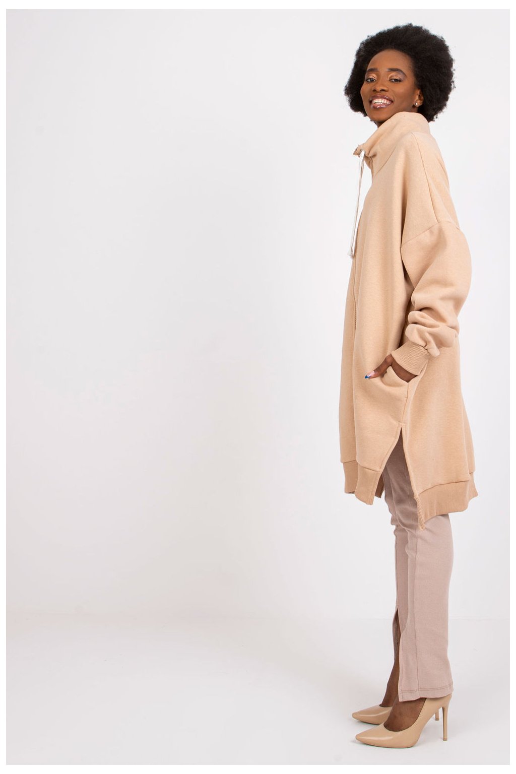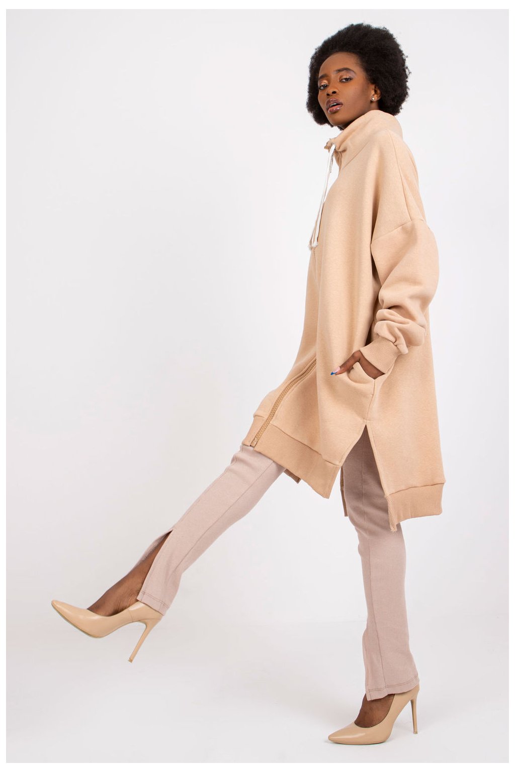 Dámská mikina s prodlouženým střihem a zapínáním na zip. Mikina s dlouhým rukávem a vysokým stojáčkem. Boční rozparky, kapsy v bočních švech.