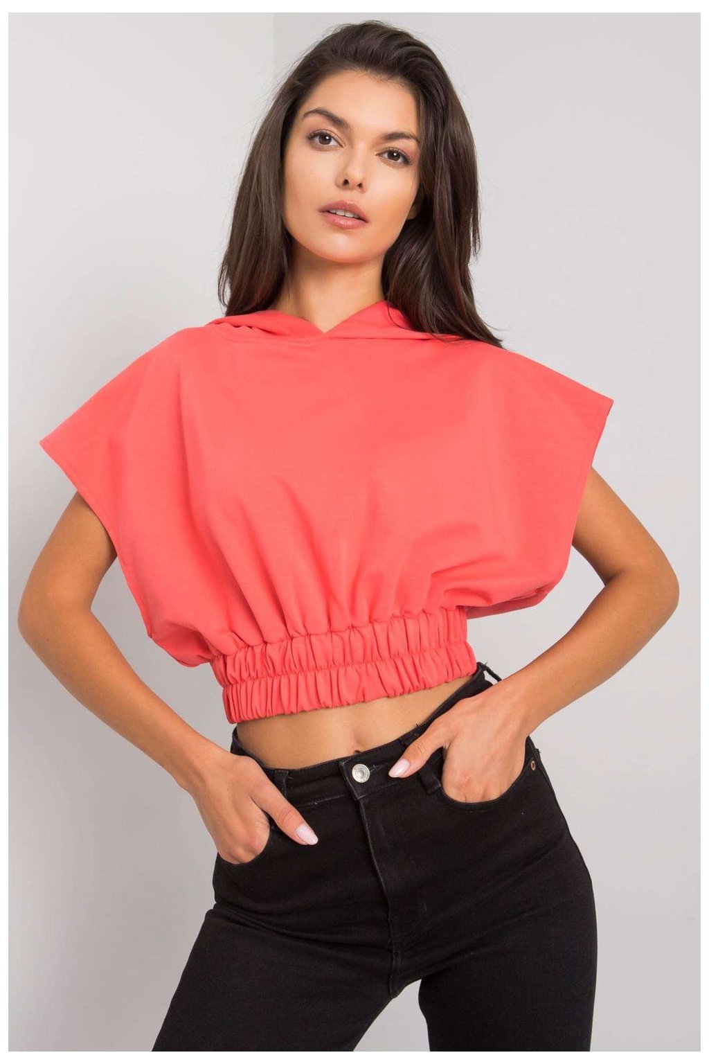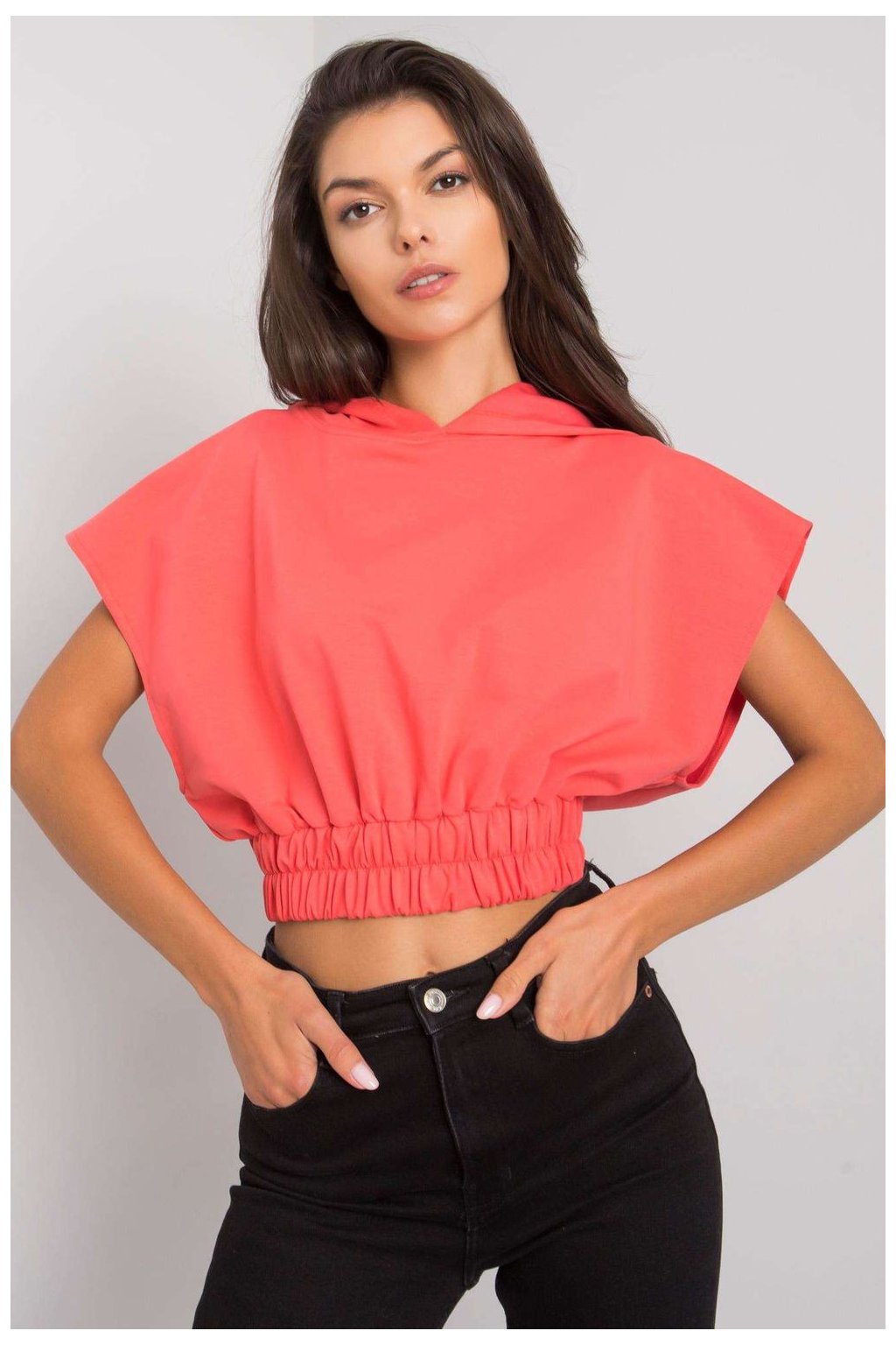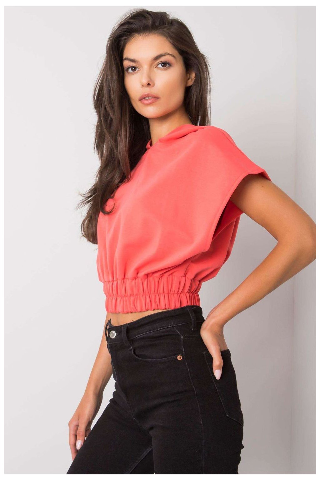 Dámská mikina volného střihu s krátkými rukávy a kapucí. Široká gumička ve spodní části.