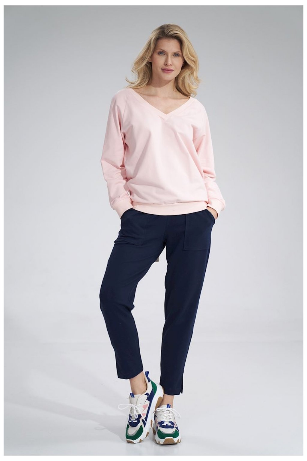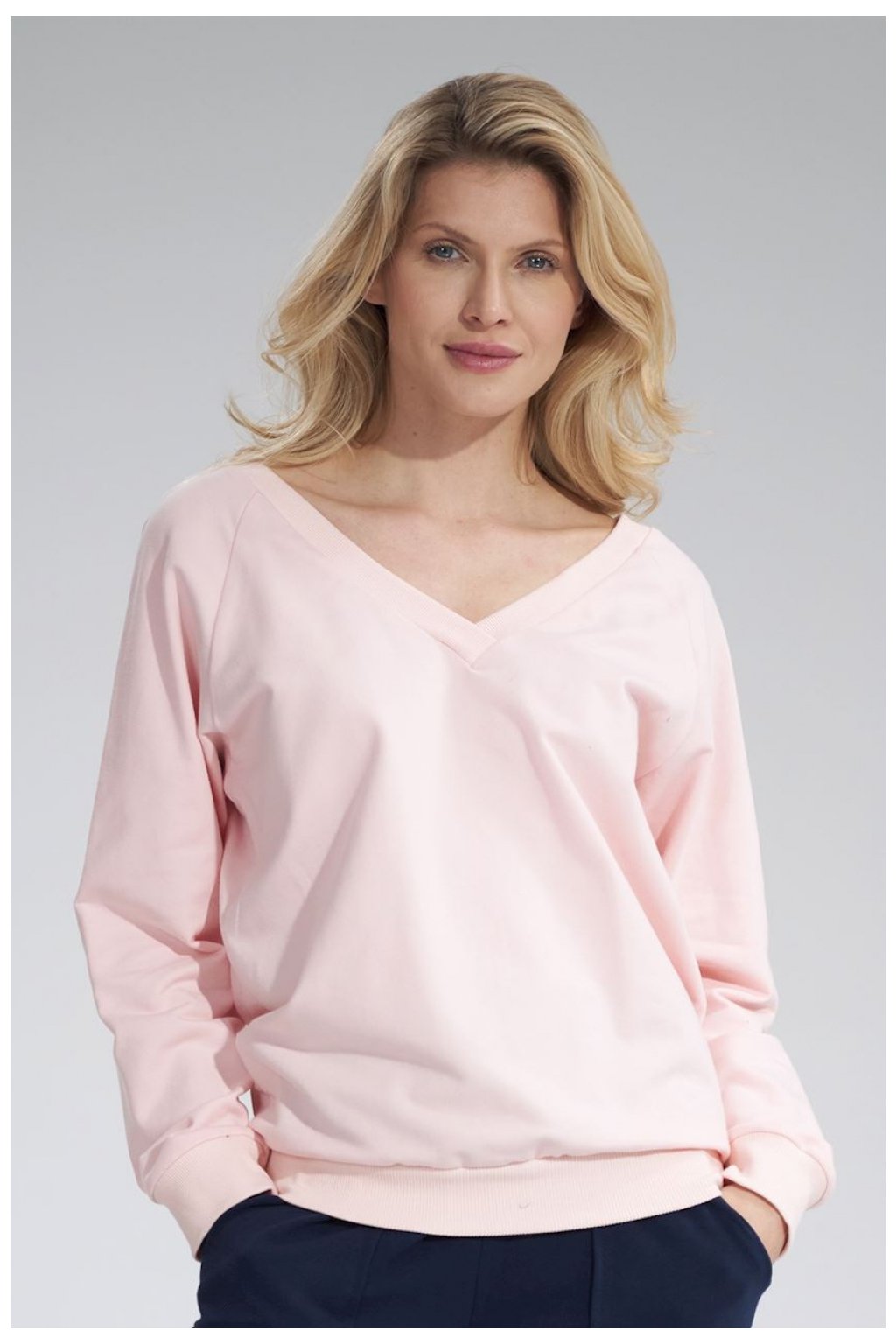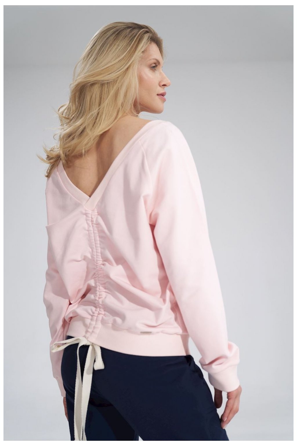 Bavlněná mikina s výstřihem do V a dlouhými rukávy zakončenými žebrovaným lemem. Vzadu s ozdobnou stuhou.