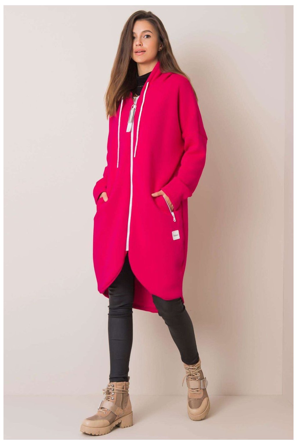 Dámská mikina s prodlouženým střihem, dlouhými rukávy a kapucí. Mikina se zapíná na zip a po stranách má kapsy na zip.