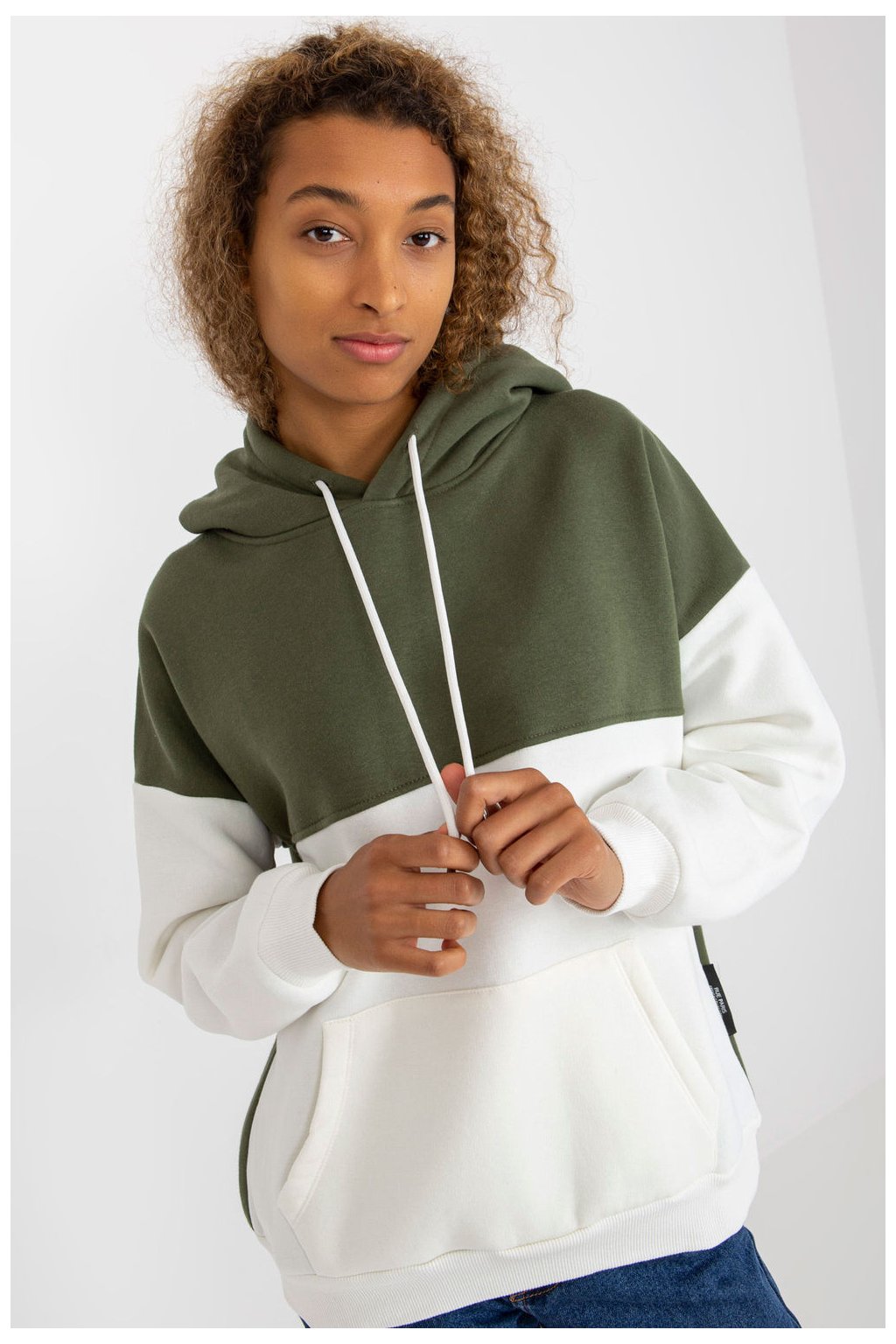 Dvoubarevná dámská mikina s dlouhým rukávem a kapucí. Klokaní kapsa na přední straně.