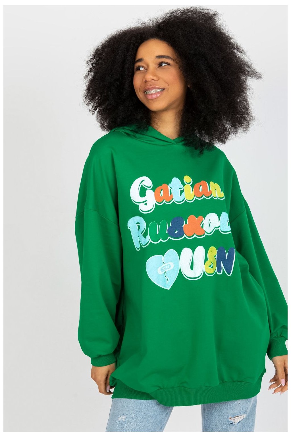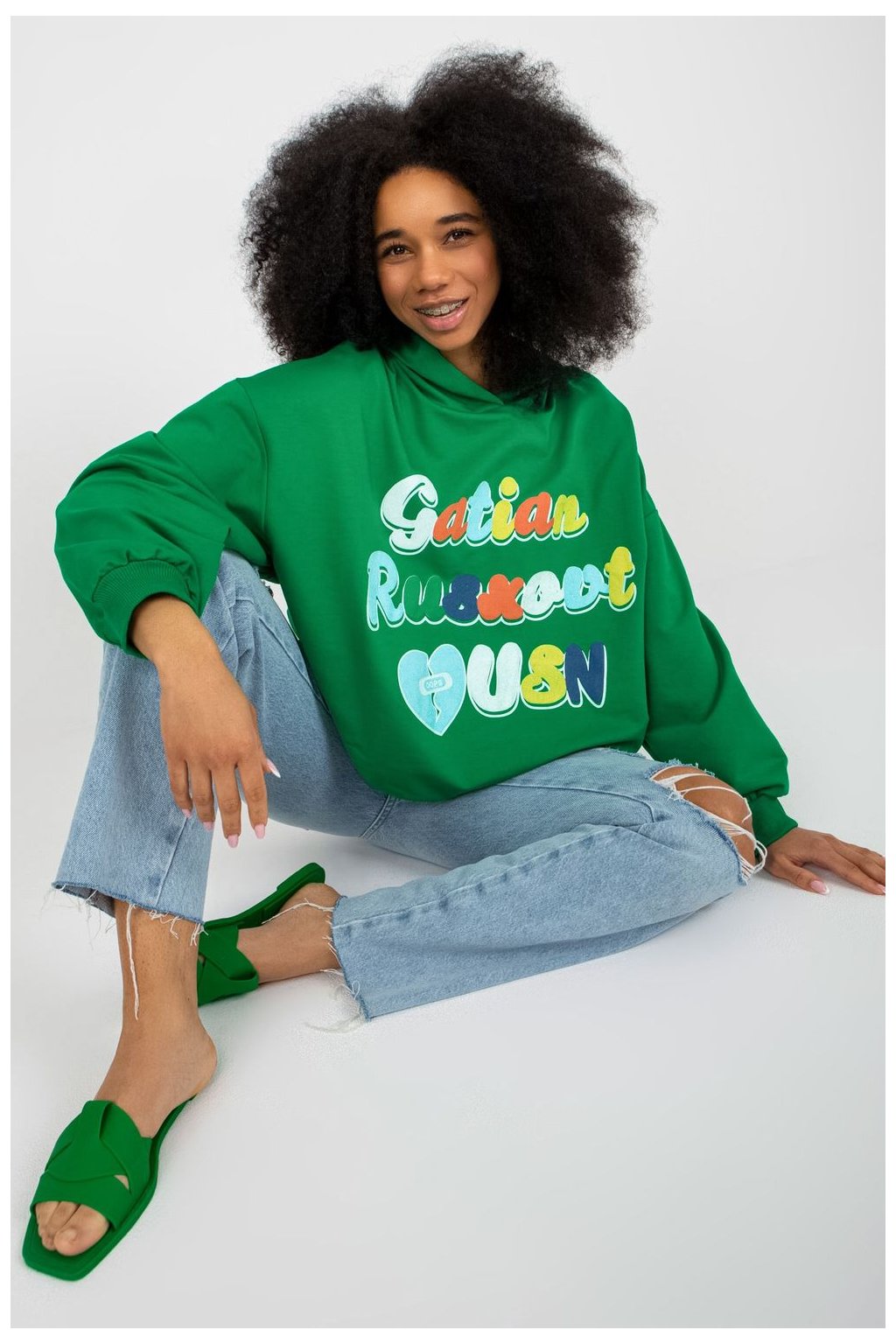 Dámská mikina rovného střihu s dlouhými rukávy a kapucí. Kapsy na bocích. Ozdobný nápis na přední straně.