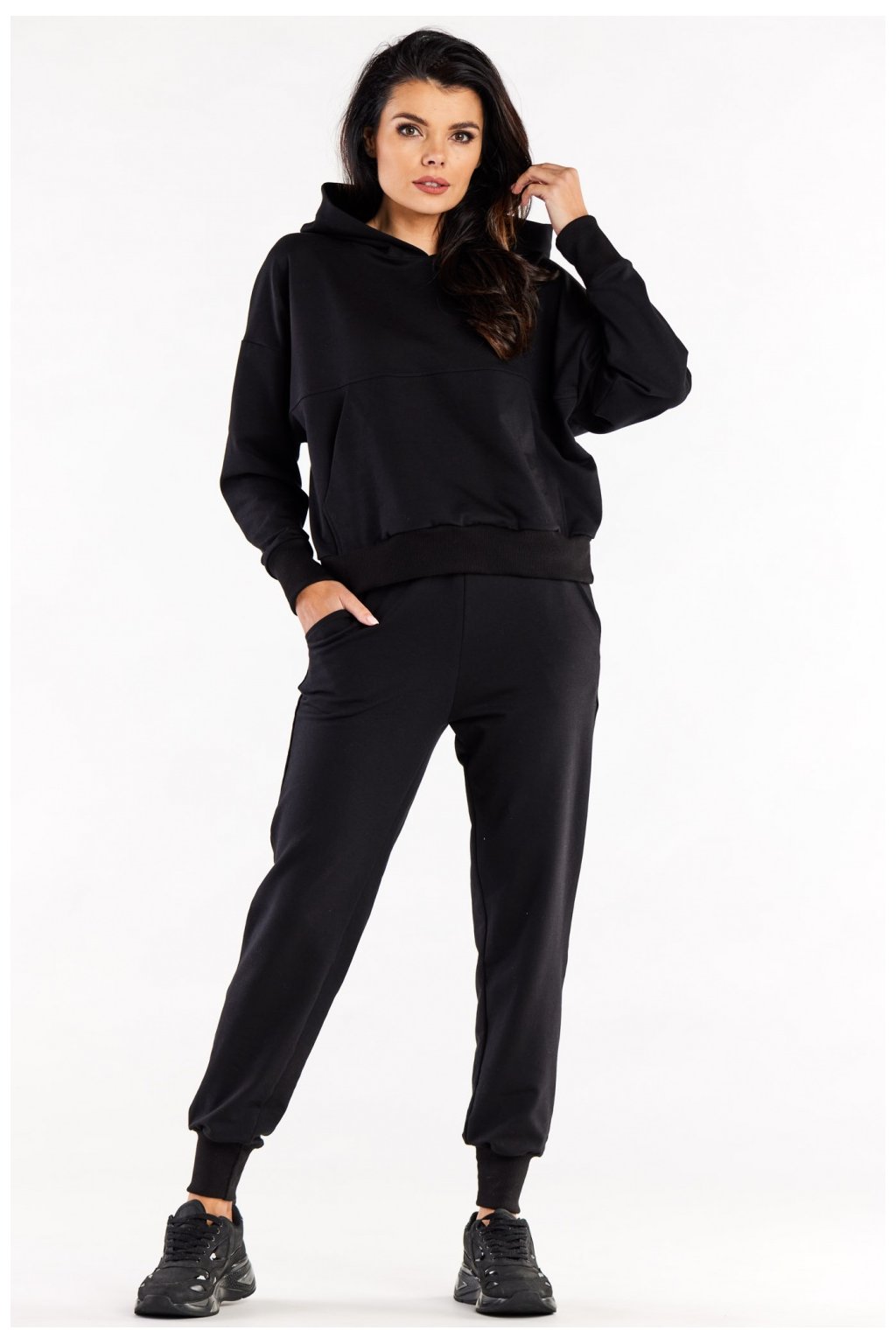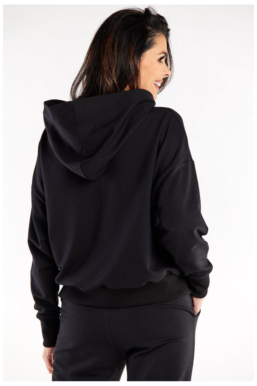 Volná mikina s dlouhými rukávy, kapucí a ozdobným prošíváním na přední straně. Velká klokaní kapsa na přední straně.