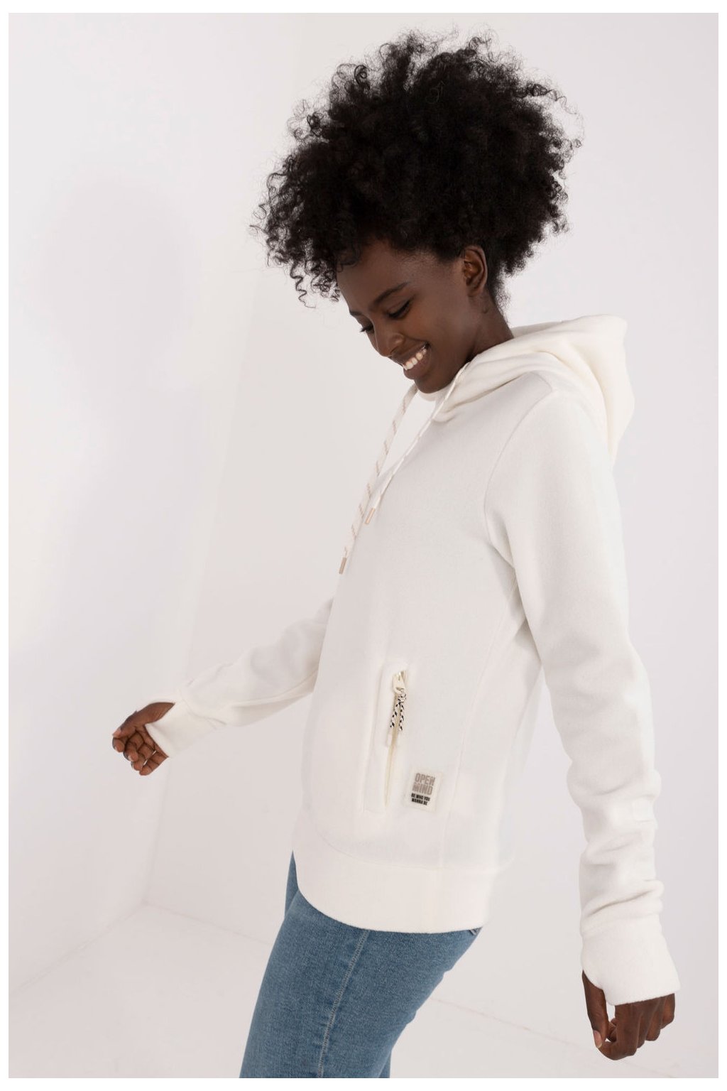Dámská mikina s kapucí, ideální na chladnější dny. Vyrobená z hladkého materiálu, poskytuje pohodlí a teplo díky dodatečnému vybavení. Mikina má standardní délku a dlouhý rukáv, což ji činí univerzálním prvkem šatníku. Praktické vložené kapsy na zip jsou ideální pro ukládání drobných věcí. Kapuce se šňůrkami umožňuje regulaci a dodatečnou ochranu před větrem. Je to ideální volba pro každodenní outfit, zajišťující pohodlí a funkčnost.