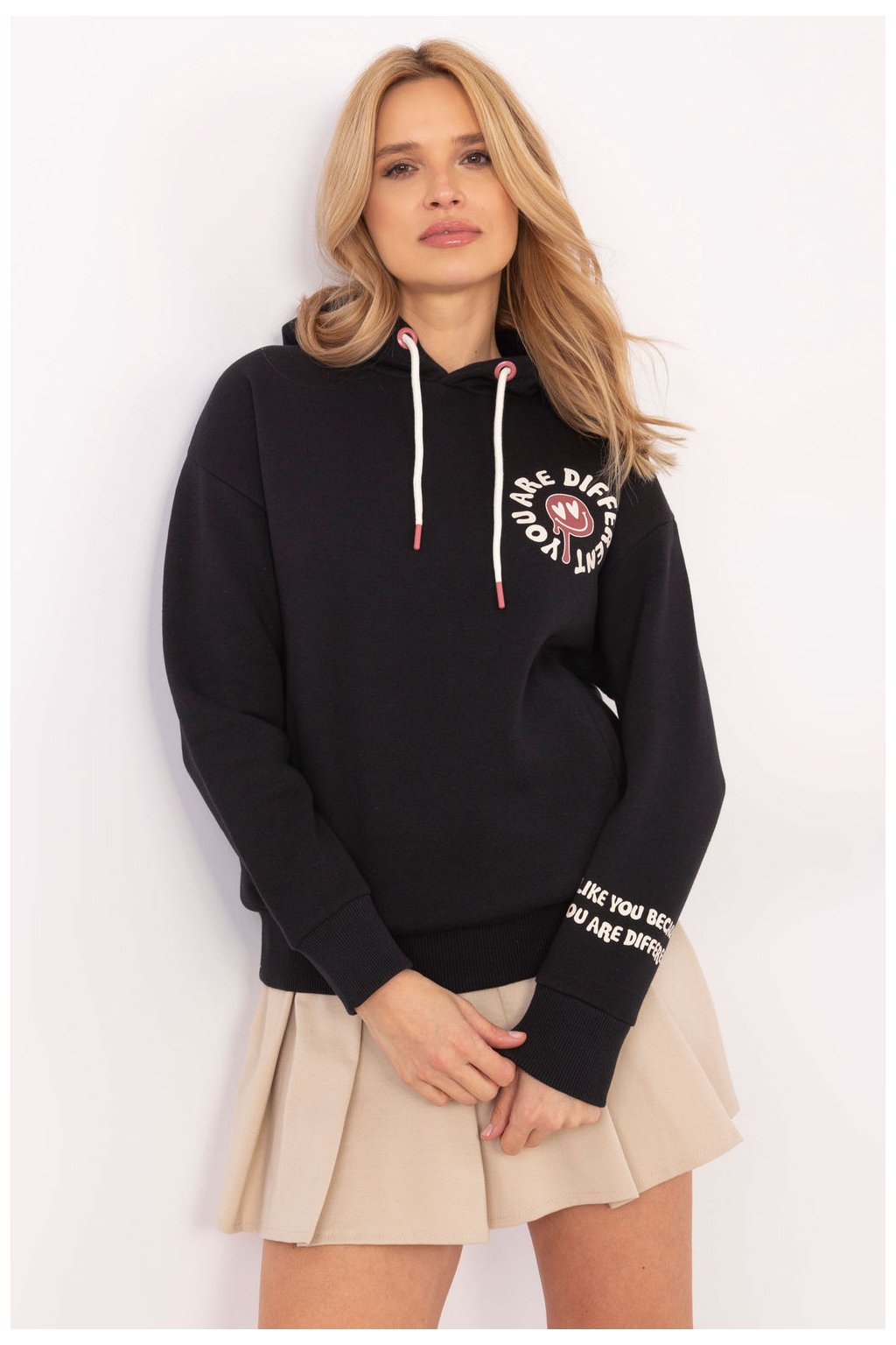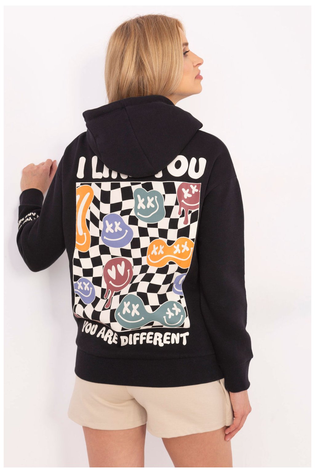 Dámská volná mikina je skvělou volbou na každý den, kombinující pohodlí s moderním designem. Vyrobená z vysoké kvality směsi bavlny a polyesteru, je jemná na dotek, odolná a pohodlná na nošení. Mikina má standardní délku a dlouhý rukáv, co ji činí univerzálním kouskem šatníku na chladnější dny. Jejím charakteristickým prvkem jsou potisky a nápisy umístěné na zádech, přední straně a rukávu, které dávají mikině moderní a originální styl. Pohodlná kapuce a kapsy zvyšují praktičnost a funkčnost, ideální pro každodenní nošení. Mikina je tepelně izolovaná, co zajišťuje dodatečné tepelné pohodlí v chladných dnech. Bez zapínání je tento model snadno nasaditelný a ideální pro volné stylizace s džíny, legíny nebo tepláky.