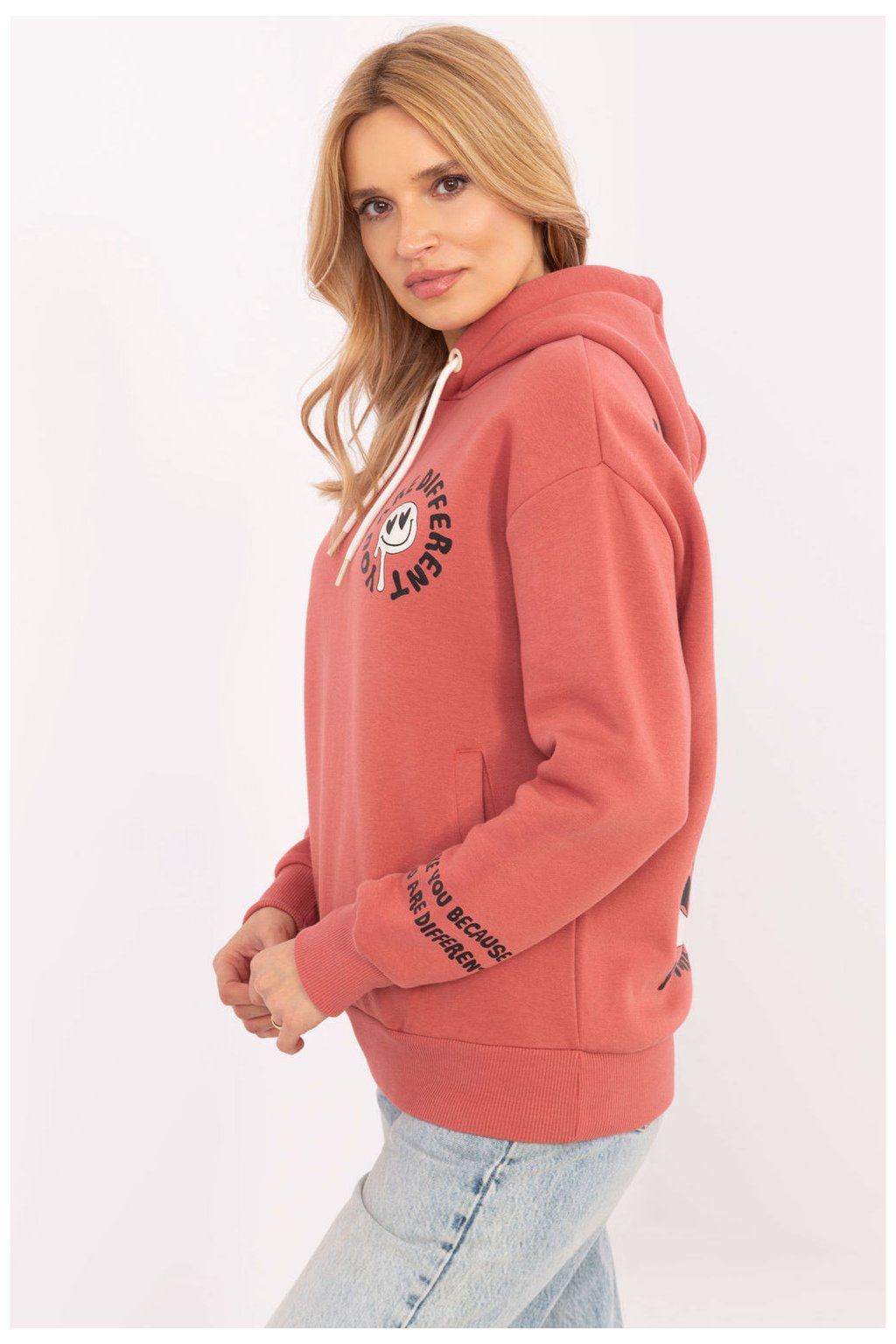 Dámská volná mikina je skvělou volbou na každý den, kombinující pohodlí s moderním designem. Vyrobená z vysoce kvalitní směsi bavlny a polyesteru, je jemná na dotek, odolná a pohodlná na nošení. Mikina má standardní délku a dlouhý rukáv, co ji činí univerzálním kouskem šatníku na chladnější dny. Jejím charakteristickým prvkem jsou potisky a nápisy umístěné na zádech, přední části a rukávu, které dávají mikině moderní a originální styl. Pohodlná kapuce a kapsy na zip zvyšují praktičnost a funkčnost, ideální pro každodenní nošení. Mikina je tepelně izolovaná, co zajišťuje dodatečný termální komfort v chladných dnech. Bez zapínání je tento model snadno nasaditelný a skvěle se hodí k volnočasovým stylizacím s džíny, legíny nebo tepláky.