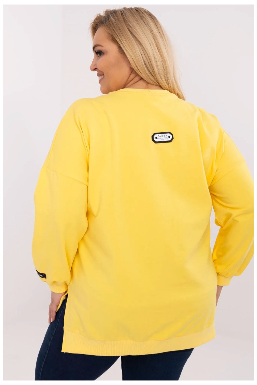 Dámská mikina plus size ve stylu casual je skvělou volbou pro každodenní nošení pro ženy, které ocení pohodlí a moderní minimalismus. Vyrobená z měkké, příjemné bavlny s přídavkem elastanu poskytuje pohodlí a volnost pohybu. Model má standardní délku, klasický kulatý výstřih a dlouhý rukáv. Hladký materiál jí dodává univerzální charakter, který lze snadno sladit s různými stylizacemi, od džínů po legíny. Mikina nemá zapínání, což z ní dělá velmi pohodlný kousek na oblékání. Dalšími akcenty jsou nášivka na zádech a rukávu, které decentně zdůrazňují její moderní, casualový styl. Ideální na každý den do práce, pro procházku nebo relaxaci doma.