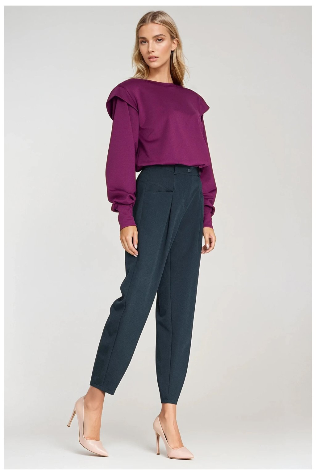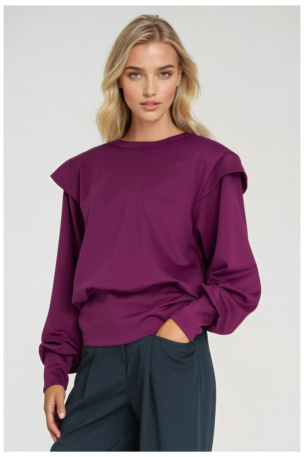 Stylový dámský oversized svetr kombinuje pohodlí s moderním designem. Má kulatý výstřih a dlouhé rukávy s obnovenou linií ramen, zakončené širokými lemy, které dodávají celku módní charakter. Díky polštářům na ramenou svetr decentně zdůrazňuje siluetu, vnášející do každodenního looku špetku elegance. Přes hlavu, s vysokým lemem dole, poskytuje pohodlí nošení a skvěle padne na postavu. Jedná se o univerzální model, který se hodí jak do každodenních stylizací, tak do více stylových kombinací.