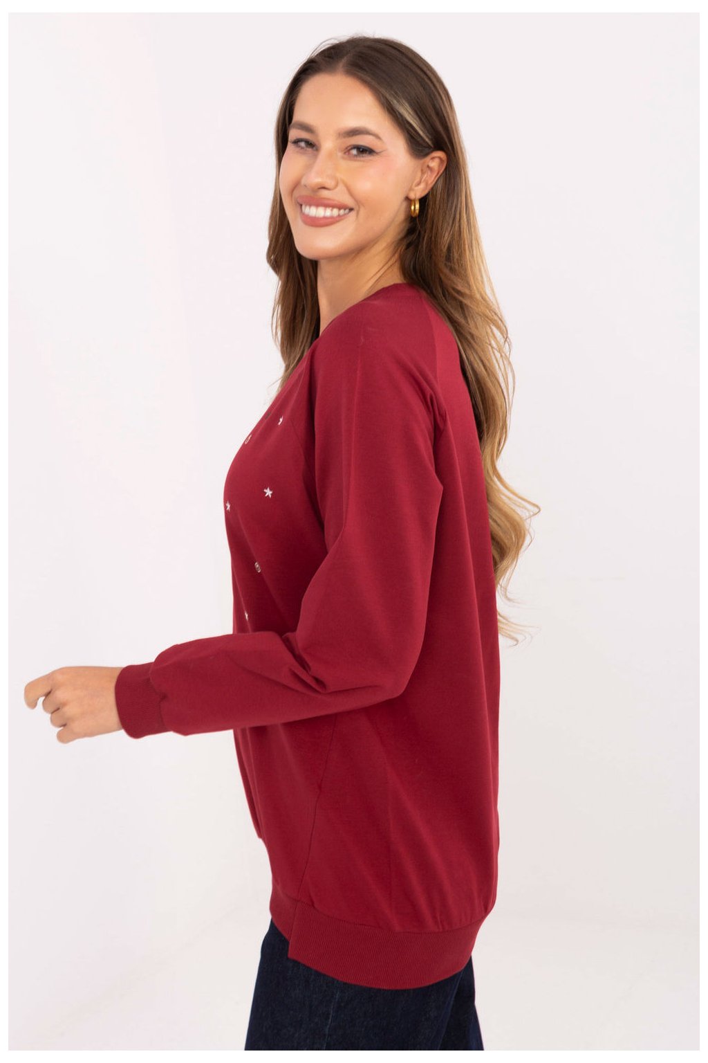 Stylový dámský mikina v casual stylu je ideální volbou na každý den. Vyrobená z vysoce kvalitní bavlny s přídavkem elastanu, je měkká, příjemná na dotek a poskytuje plný komfort nošení. Model standardní délky s dlouhými rukávy má kulatý výstřih a není zapínán, co mu dodává volný, univerzální charakter. Přední část mikiny zdobí decentní vyšívaný nápis, který dodává celku jemný ženský akcent. Jedná se o skvělý návrh pro ženy, které ocení pohodlí, jednoduchost a stylový detail ve svých každodenních outfitech.