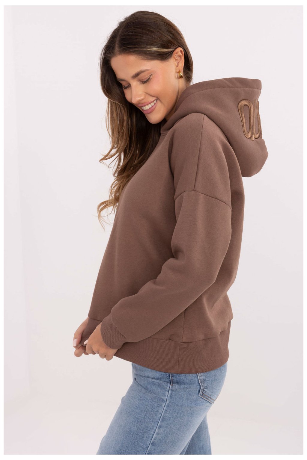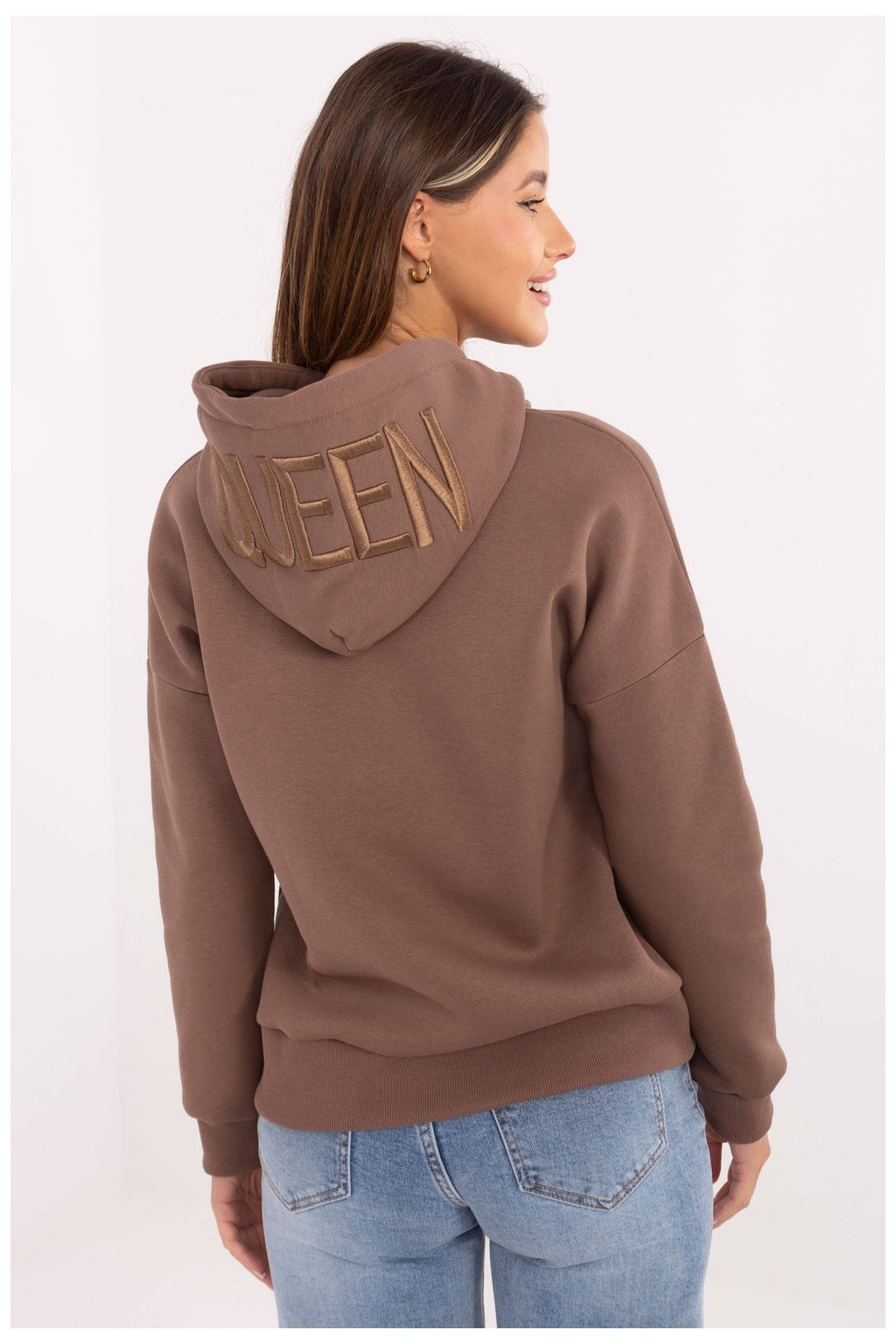 Pohodlná dámská mikina s casualovým charakterem, ideální na každý den. Vyrobená z vysoké kvality bavlny s přídavkem elastanu, je měkká, elastická a příjemná na dotek. Hladký materiál a standardní délka zaručují, že mikina skvěle padne na postavu a hodí se k mnoha stylizacím. Model s dlouhým rukávem a kapucí zdobenou potisknutým nápisem se vyznačuje módním, sportovním stylem. Bez zapínání a vnitřním zateplením zajistí plný komfort a teplo v chladnějších dnech. Je to ideální volba pro ženy, které ocení pohodlí, styl a funkčnost.