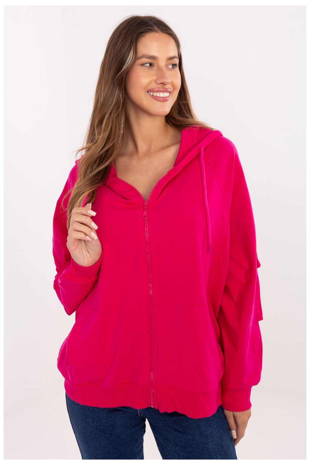 Klasická dámská mikina s casual charakterem, ideální na každý den. Vyrobená z příjemné bavlny s přídavkem elastanu, zaručuje pohodlí a volnost pohybu. Hladký materiál a standardní délka dělají mikinu skvěle ladící s džíny, legíny nebo tepláky. Model má dlouhý rukáv, praktickou kapuci a zip, co jí dodává funkčnost. Na přední straně jsou vložené kapsy, ideální na drobnosti nebo pro zahřátí rukou. Jedná se o univerzální kousek oblečení, který se hodí do každého ročního období.