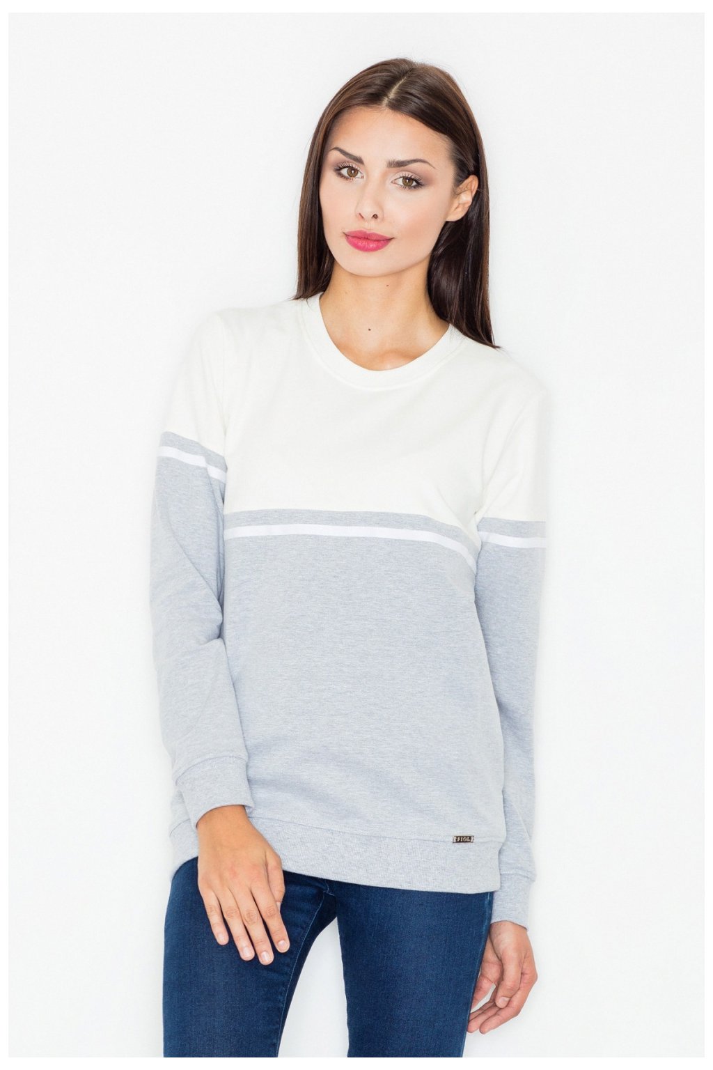 Dámská mikina z měkkého úpletu. Klasický rovný střih s kulatým výstřihem. Spodní část a rukávy jsou zakončeny žebrovaným lemem.