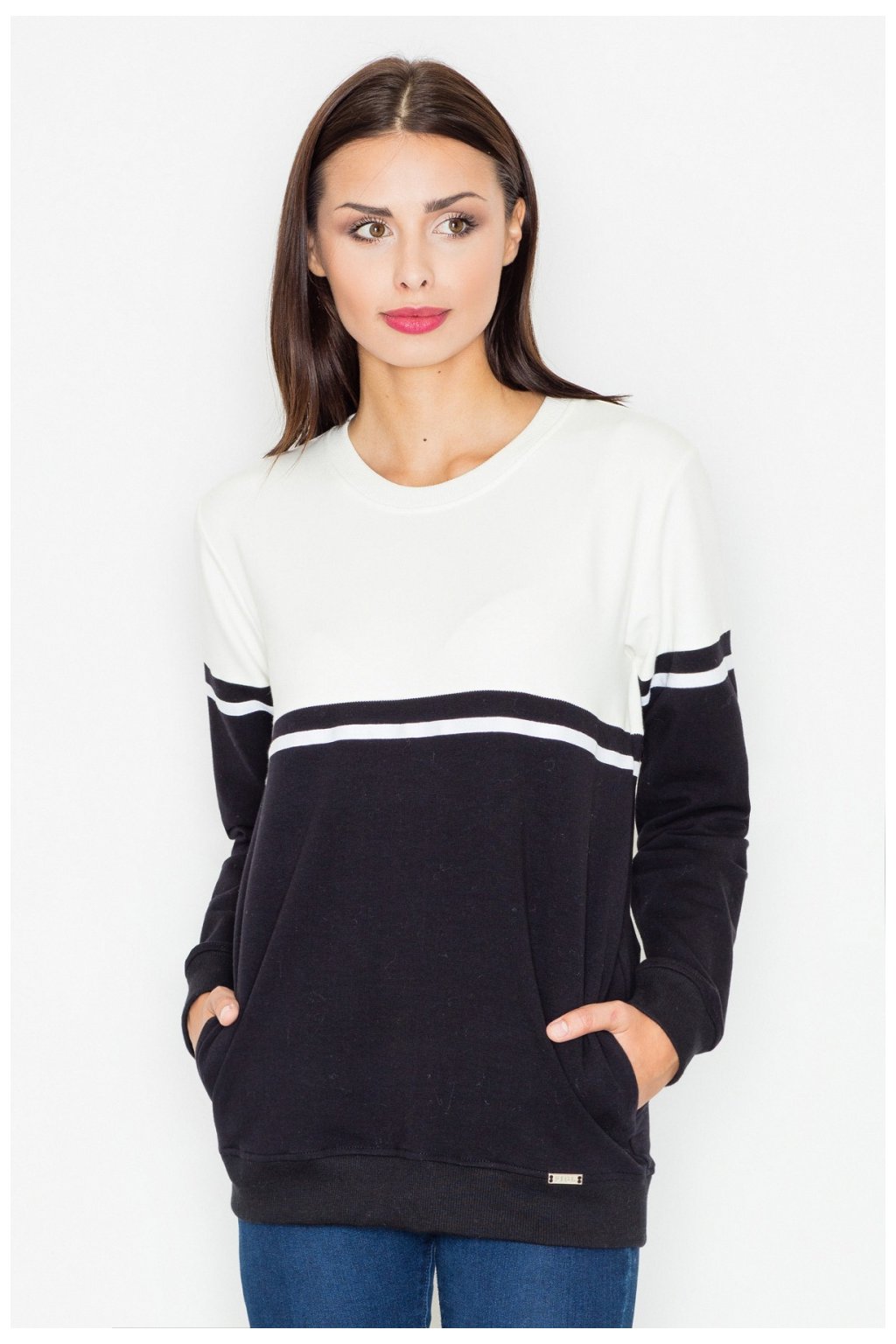 Dámská mikina z měkkého úpletu. Klasický rovný střih s kulatým výstřihem. Spodní část a rukávy jsou zakončeny žebrovaným lemem.