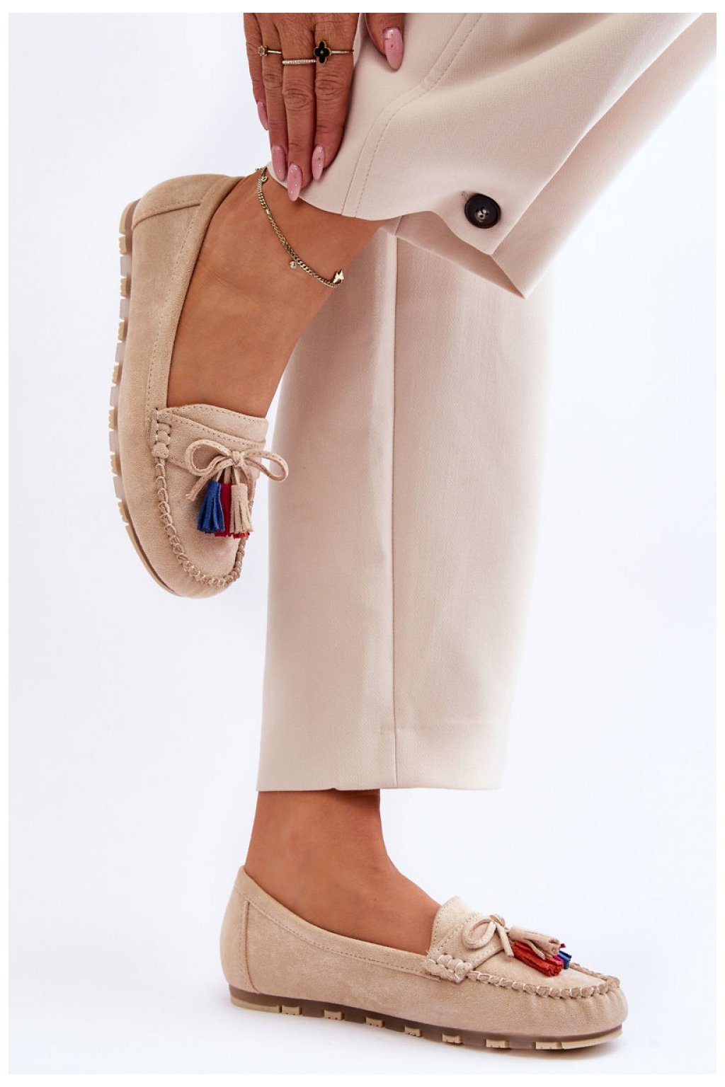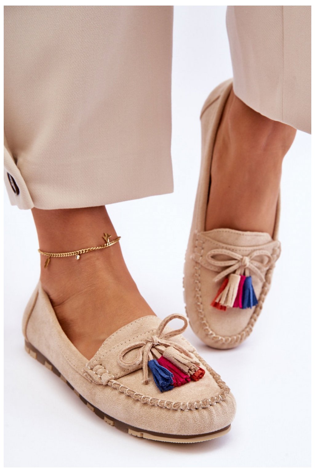 Neuvěřitelně pohodlné dámské mokasíny byly vyrobeny z ekologického semiše. Stélka z přírodní kůže zajistí pohodlí při používání. Tento střih doplní mnoho vašich stylizací. Mokasíny byly usazeny na jemné platformě. Mokasíny mají navíc ozdobnou mašli a střapce.