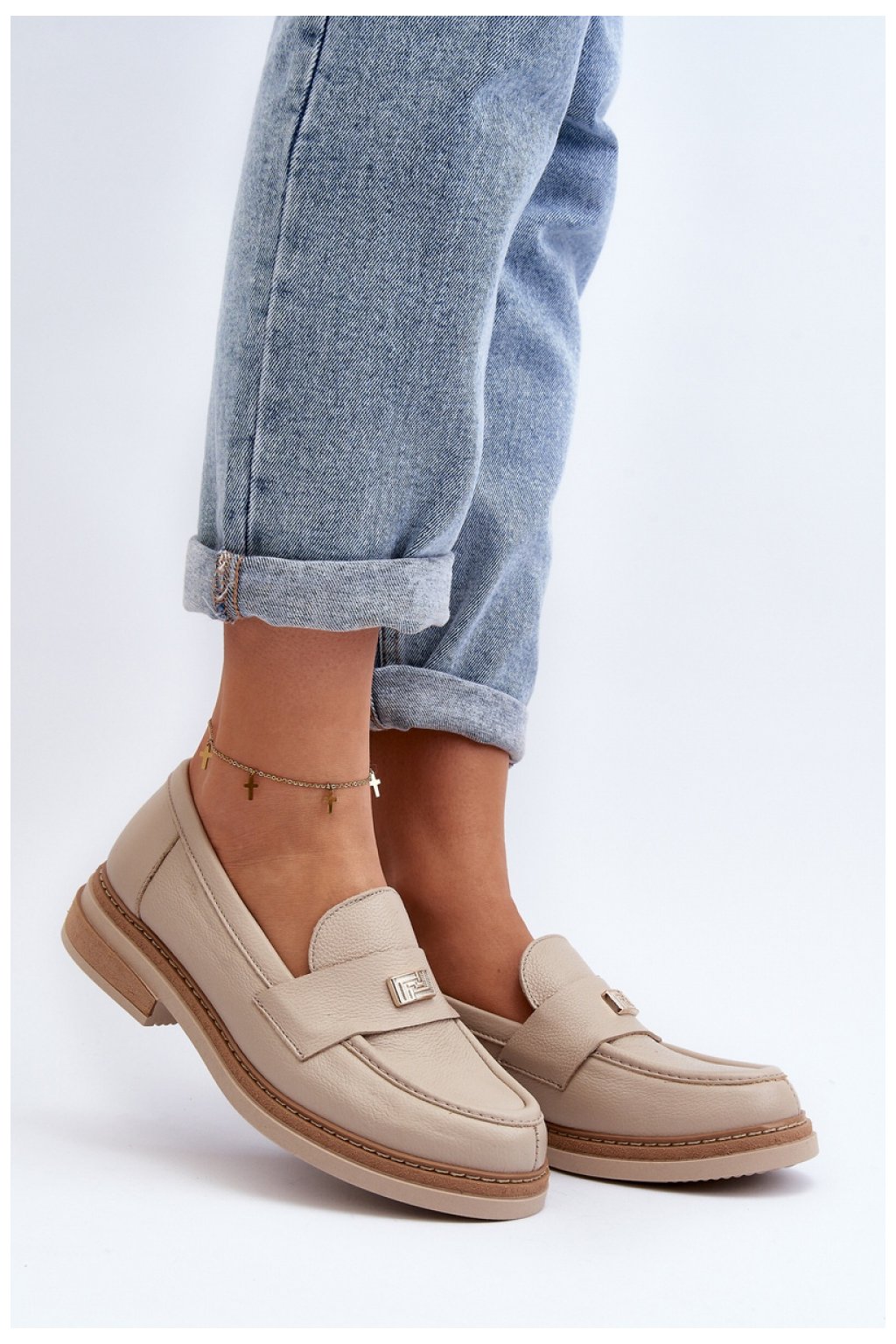 Dámské mokasíny z přírodní kůže. Stojí na plochém podpatku. Zaoblená špička. Malá ozdoba na přední straně. Kožená stélka poskytuje pohodlí při používání. Pultík na patě je polstrovaný. Tento elegantní střih se jistě hodí k mnoha jarním outfitům!