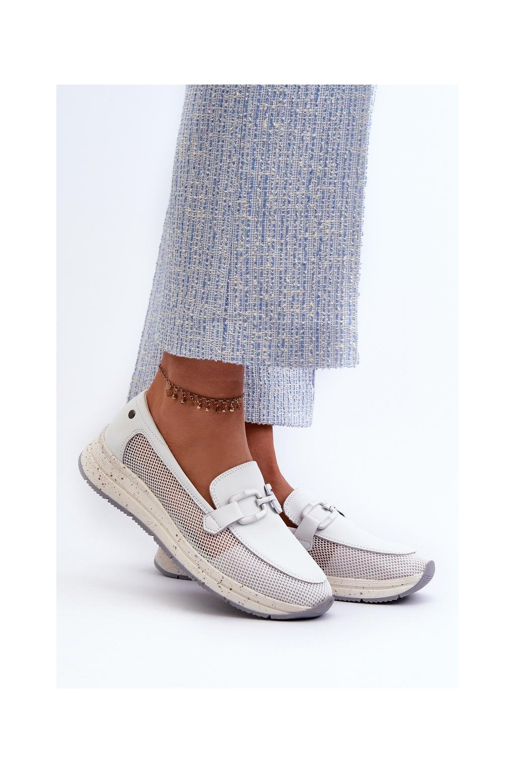 Mokasíny vyrobené z prodyšného materiálu s jemným perforovaným vzorem zajišťují pohodlí a cirkulaci vzduchu uvnitř boty. Ozdobná spona na vrchu dodává eleganci, a platforma spolu s jemným klínkem zaručuje pohodlí při chůzi. Tyto mokasíny jsou skvělou volbou pro ženy, které si váží spojení funkčnosti a stylového vzhledu.