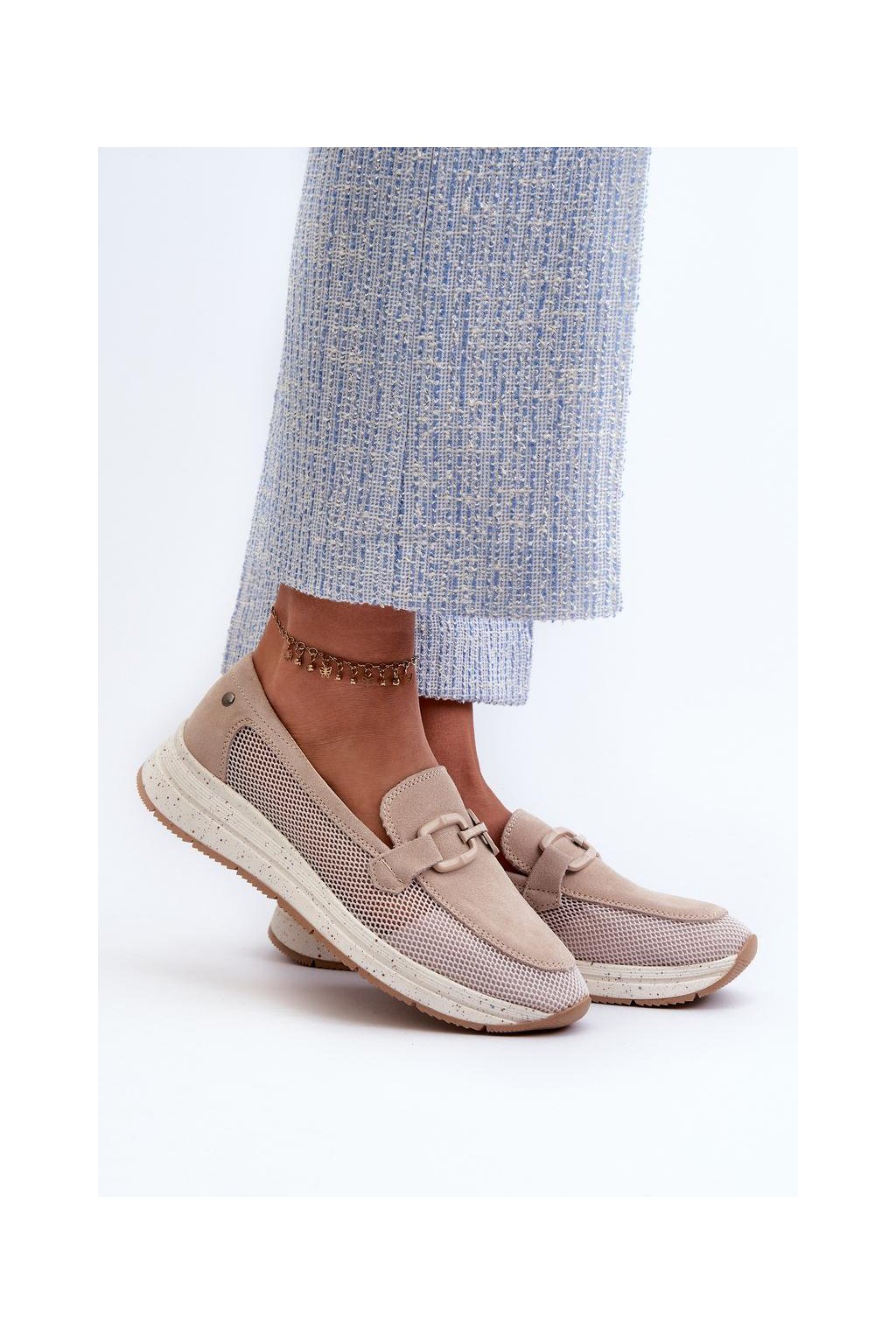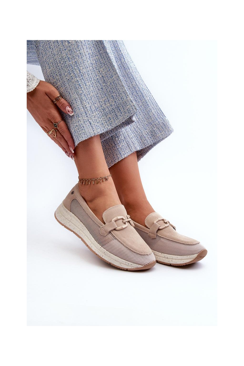 Mokasíny vyrobené z prodyšného materiálu s jemným perforovaným vzorem zajišťují komfort a ventilaci vzduchu uvnitř boty. Ozdobná přezka na vrchu dodává eleganci a platforma s jemným klínkem zaručuje pohodlí při chůzi. Tyto mokasíny jsou skvělou volbou pro ženy, které oceňují spojení funkčnosti a stylového vzhledu.