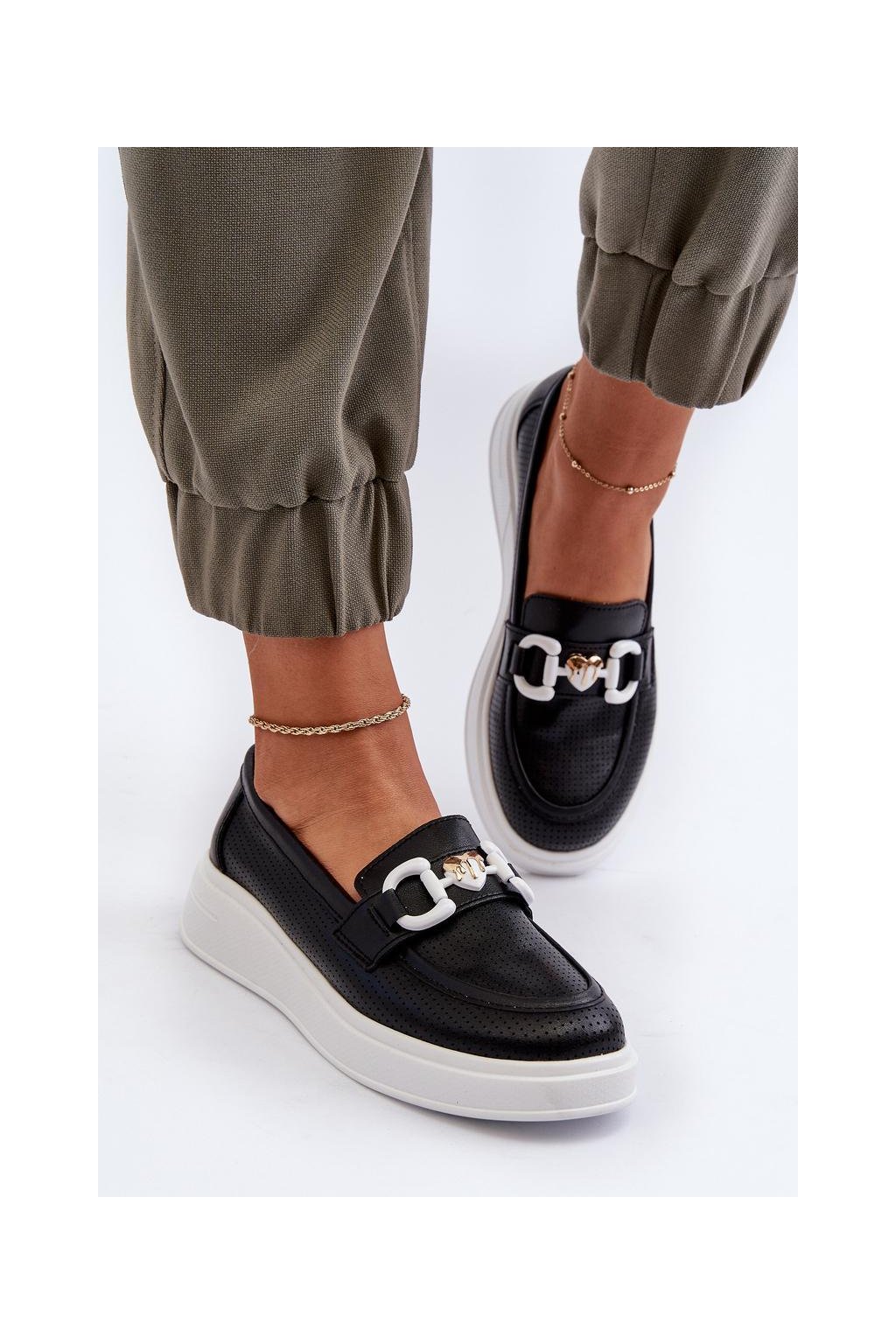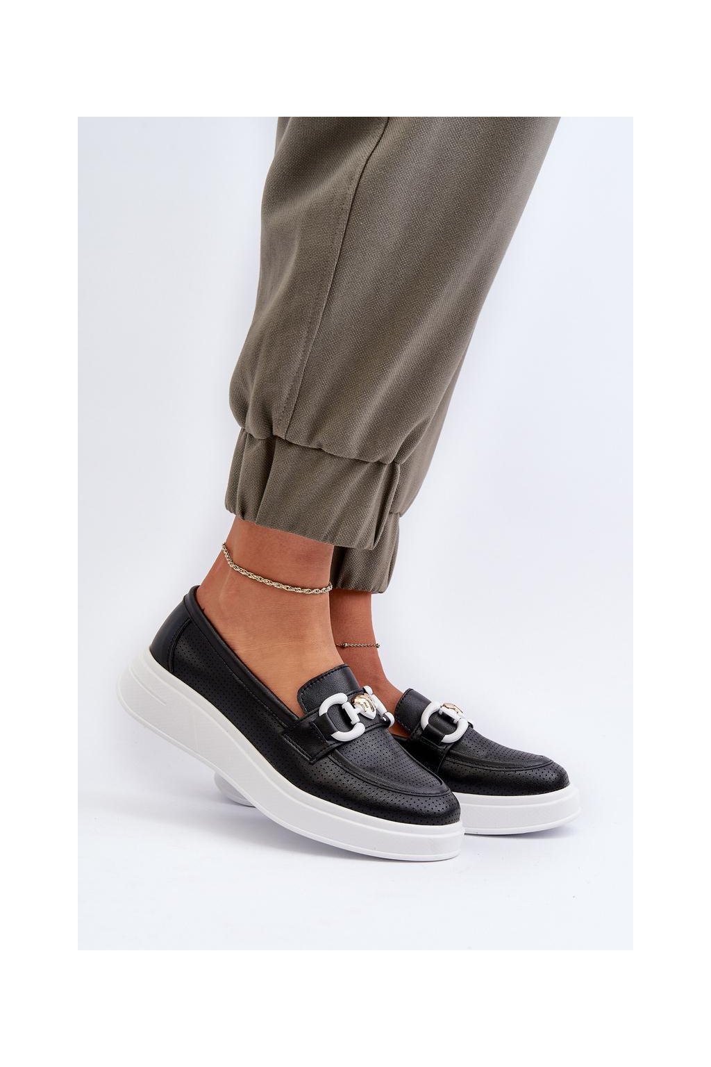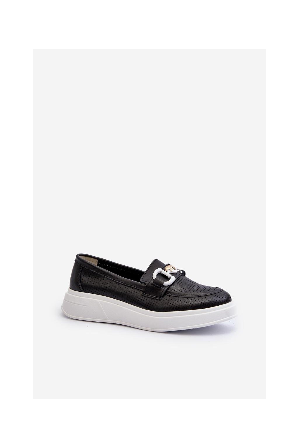 Dámské mokasíny S.Barski jsou kombinací klasiky a moderny. Jsou vyrobeny z vysoce kvalitní přírodní kůže, poskytují odolnost a pohodlí při nošení. Jsou usazeny na platformě, která zajišťuje stabilitu při chůzi. Ozdoba umístěná na přední straně jim dodává jemný půvab, díky čemuž se skvěle hodí k různým stylizacím. Jsou ideální volbou pro ženy, které ocení nejen pohodlí, ale i vytříbený styl.