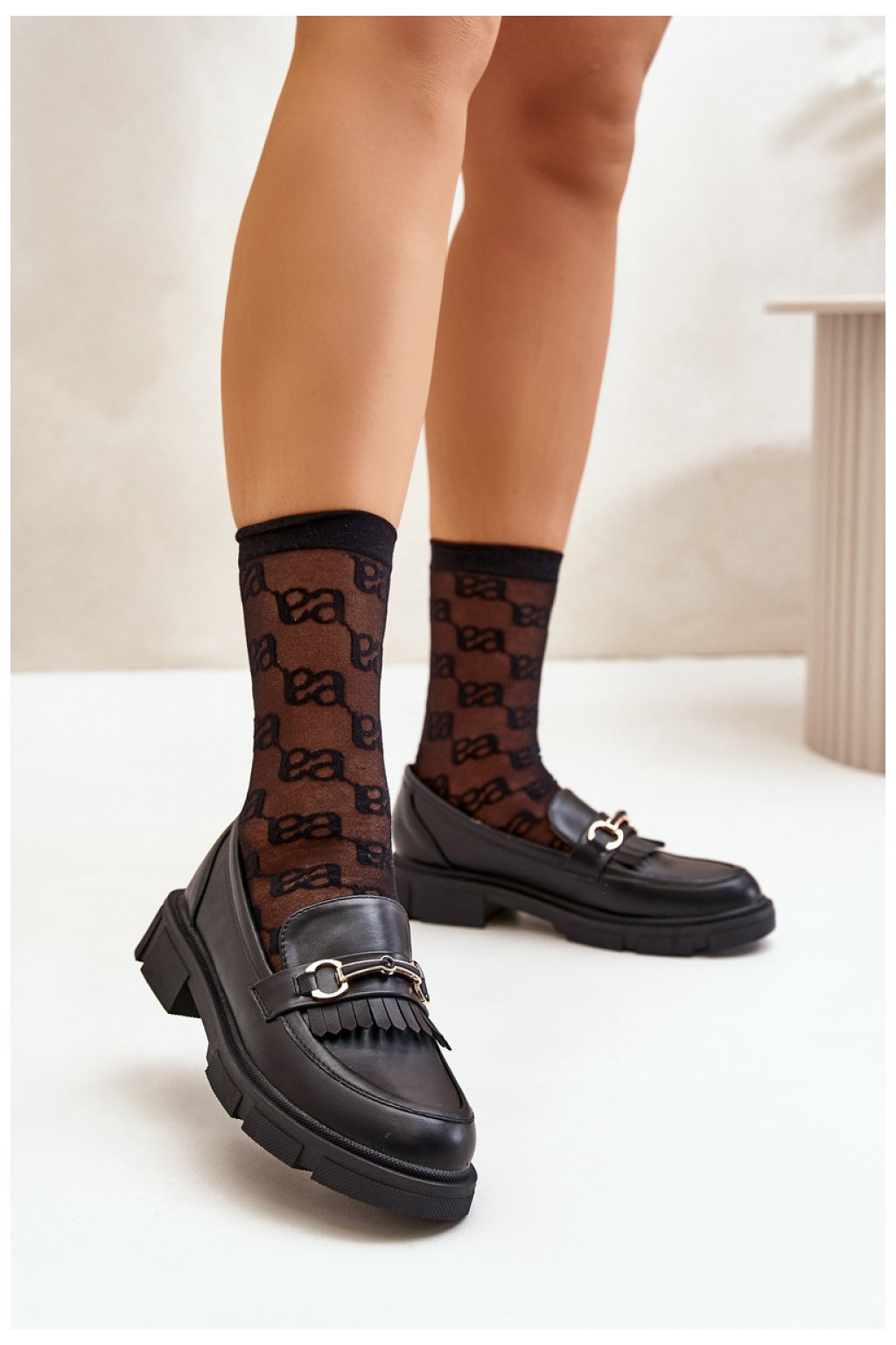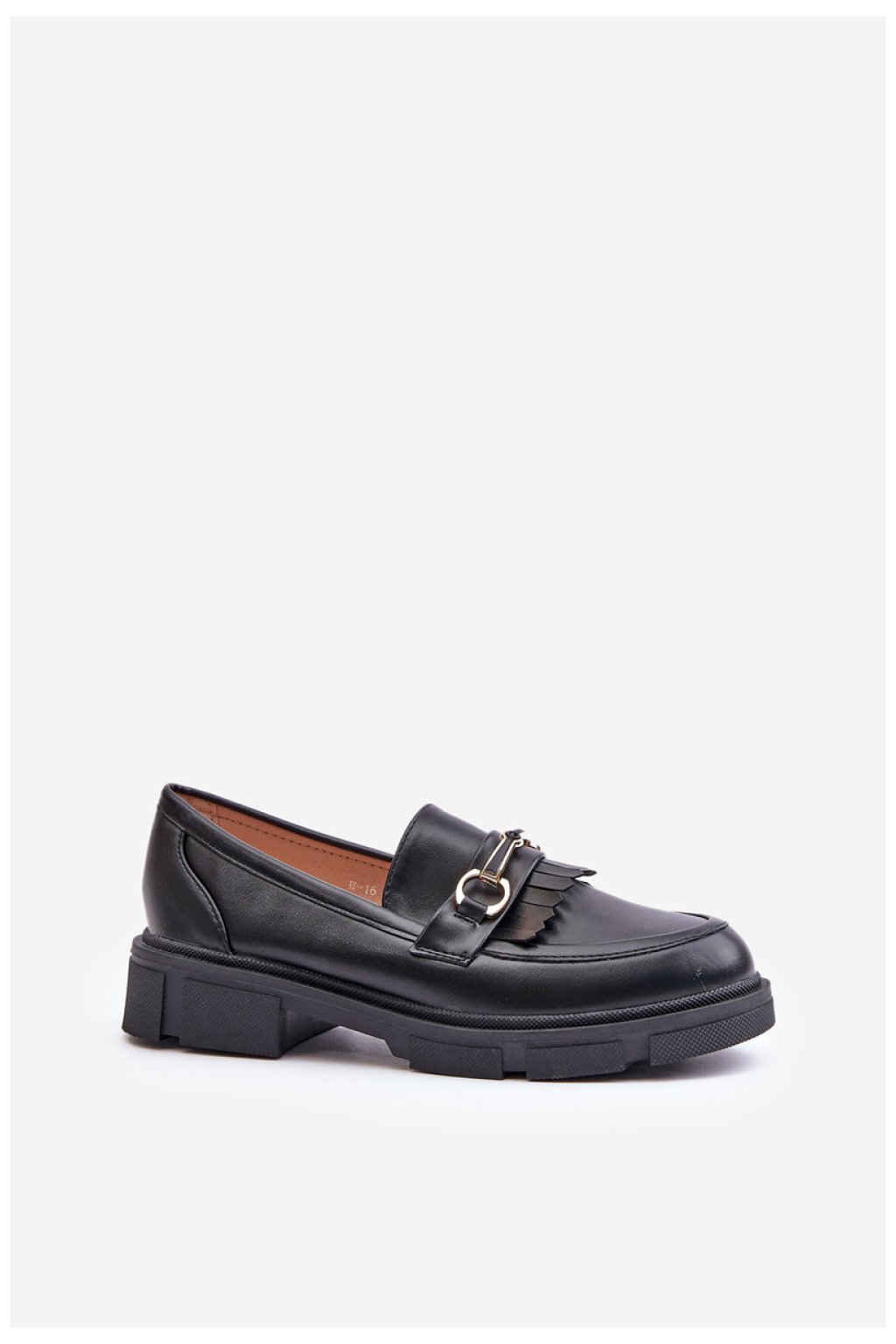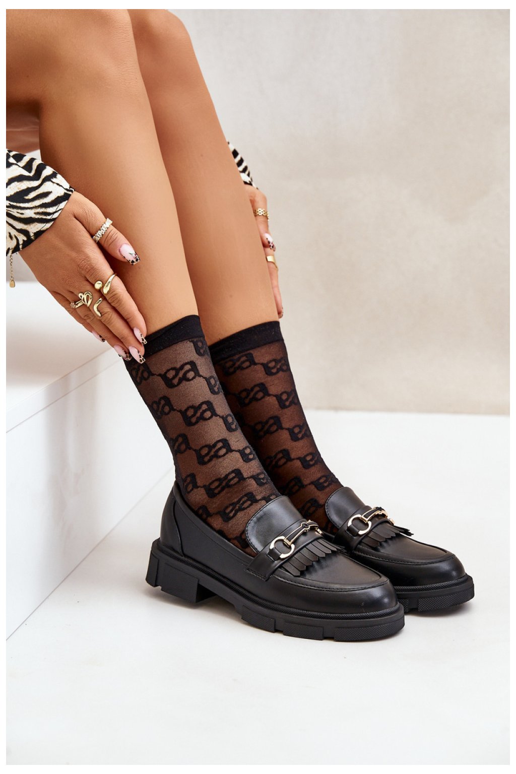 Dámské, klasické mokasíny byly vyrobeny z ekokože. Jsou umístěny na plochém podpatku. Na přední straně mají zlatou ozdobu. Špičky jsou zaoblené. Mokasíny mají vložku z měkké ekokože. Skvělý model na jarní a podzimní sezónu! Určitě byste je měla mít!