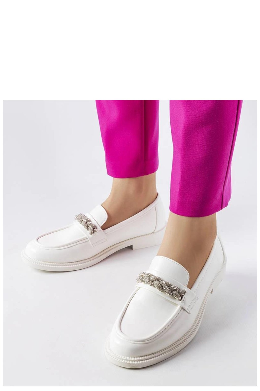 Bílé mokasíny zdobené zirkony Montreal jsou ideální obuví na léto. Vyrobené z vysoce kvalitní ekologické kůže zam, zajistí pohodlí nošení a elegantní vzhled. Velikost je standardní, takže je dobré se řídit svou velikostí při výběru. Zapínání na límec usnadňuje rychlé obouvání a svlékání bot. Podrážka z umělého materiálu je bílá, což dodává lehkost a svěžest celému outfitu. Tyto mokasíny budou skvělým doplňkem letního šatníku, přidávají mu jemný lesk díky zirkonům.